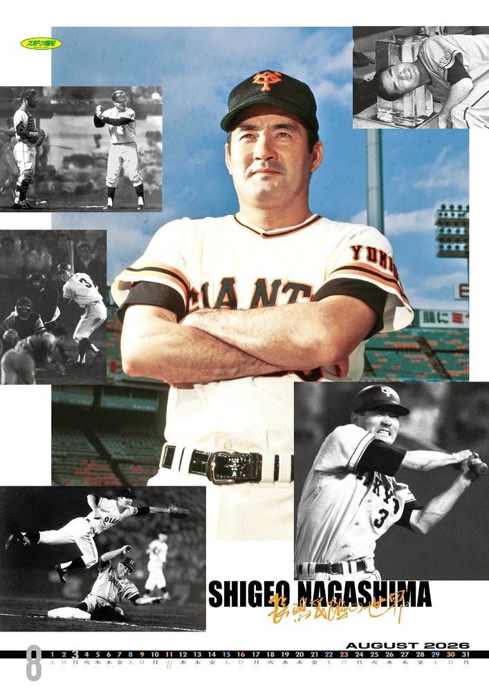 スポーツ報知を発行する報知新聞社(代表取締役社長・長谷川剛)では毎年、「ミスタープロ野球」長嶋茂雄さんのカレンダーを制作してきましたが、来年のカレンダーが最後の発行になります。「長嶋茂雄メモリアルカレンダー2026」(壁掛けA2判13枚綴り税込定価2,200円)を10月24日(金)から東京ドームの読売巨人軍直営グッズショップ「GIANTS STORE BALLPARK TOKYO」と、公式グッズ通販サイト「GIANTS ONLINE STORE」で先行発売します。打って、捕って、投げて、走って…すべてが絵になるスーパースターの厳選写真と、ミスターが書き下ろした直筆プリントも盛り込んだ13枚は、まさに永久不滅版。今年6月に永眠された長嶋さんへの感謝を詰め込んだラストカレンダーです。