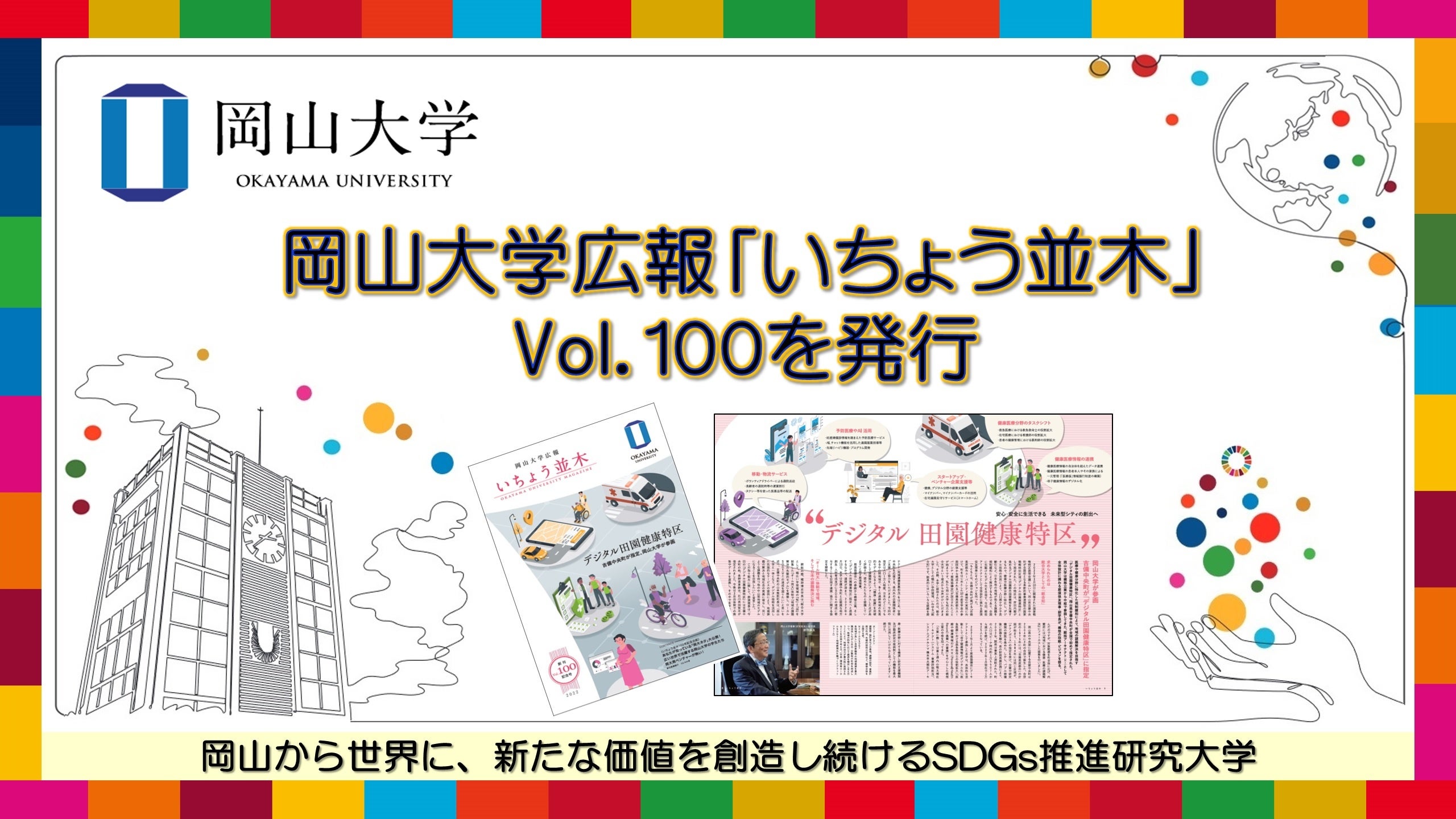 国立大学法人岡山大学(本部:岡山市北区、学長:槇野博史)は、 本学の活動などを紹介する広報誌「いちょう並木」のVol.100を発行(発行:2022年7月29日)しました。
