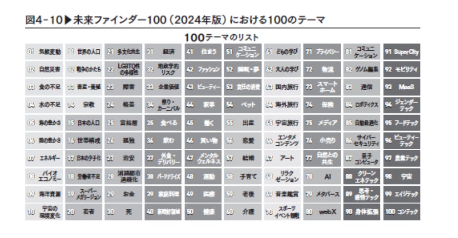 第5章では、2040年の具体的な未来像を8つの短編小説として描写。「60歳でも活躍し続ける現役サッカー選手」「自在に変身する美容男子」「ストレスを操るシニア」など、多様な属性の主人公を通じて未来のライフスタイルを具体的にイメージできる構成となっています。これらの事例から、読者は自身の業界や関心領域における未来の可能性を発見することができます。