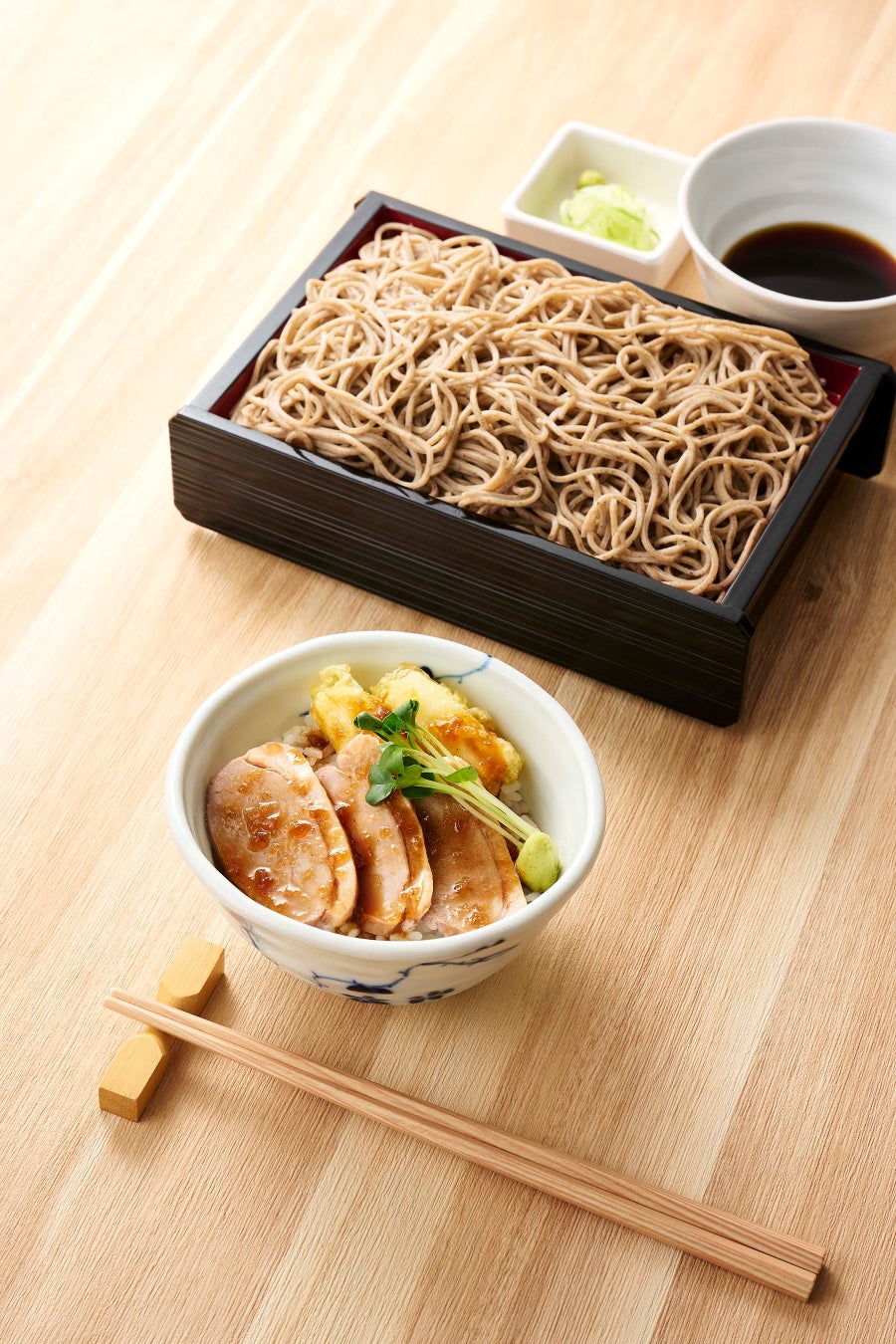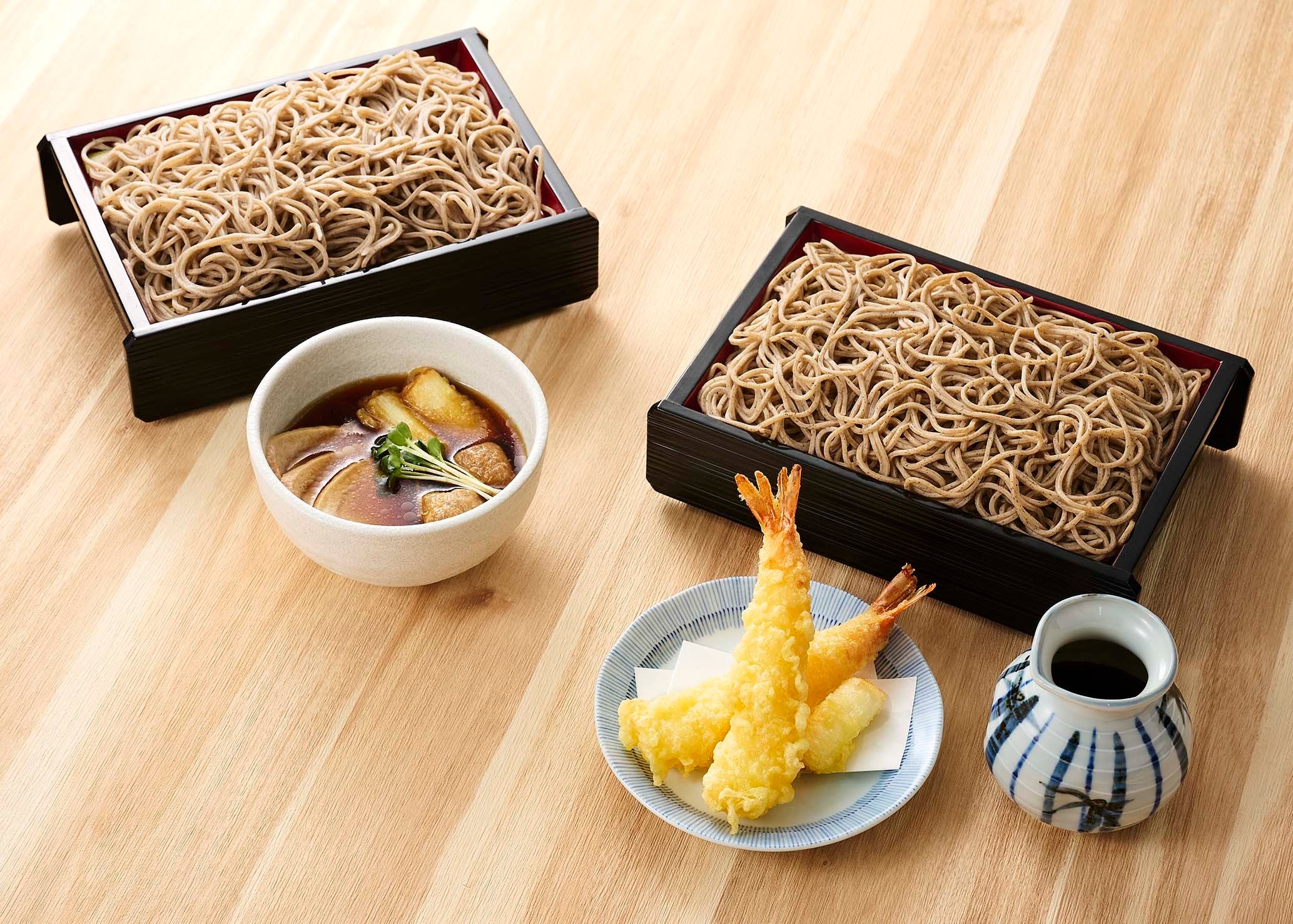 店舗仕込みの「特製鴨せいろ」と「海老天せいろ」が当ブランドの看板商品。こだわりを詰め込んだ二枚看板は、二八そばのおいしさをさらに引き立てます。