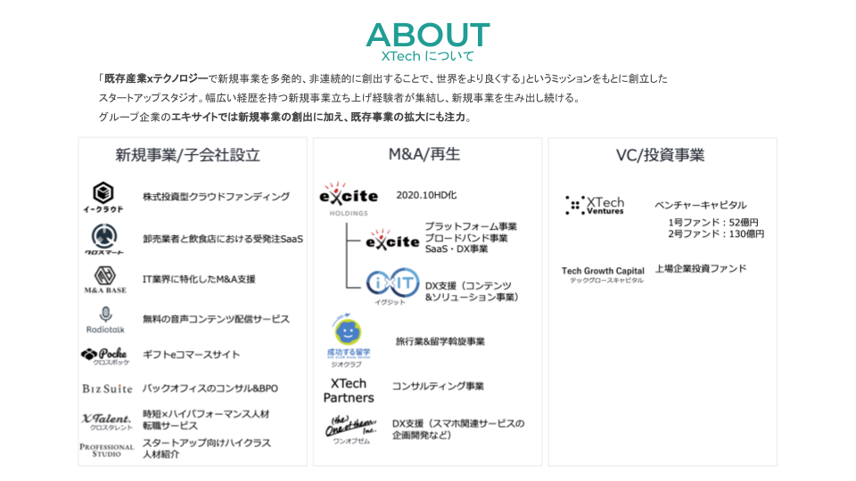 2019年7月、XTech株式会社に入社。事業再生を担当し、買収先のエキサイトT&E株式会社の代表取締役に就任。