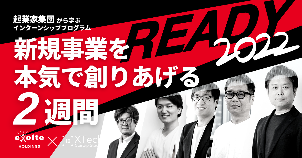 XTech株式会社(所在地:東京都中央区、代表取締役CEO:西條晋一、以下「XTech」)とエキサイトホールディングス株式会社(東京都港区、代表取締役社長CEO:西條晋一、以下「エキサイト」)は、新規事業創出インターン「READY」を8月15日から2週間共同開催します。応募申し込みは、本日より受付開始です。