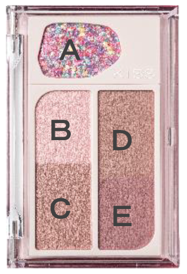 お好みで、4色から成る大粒グリッターをONすることで、多彩な光の粒が眩くきらめき・立体感のある目もとを演出します。
