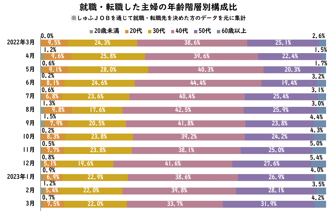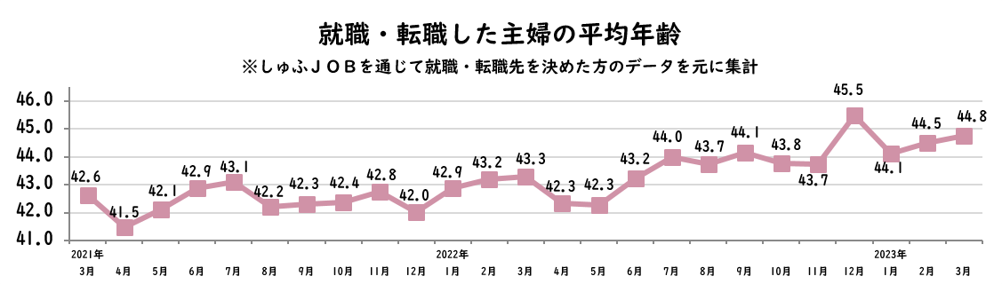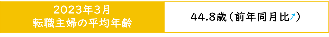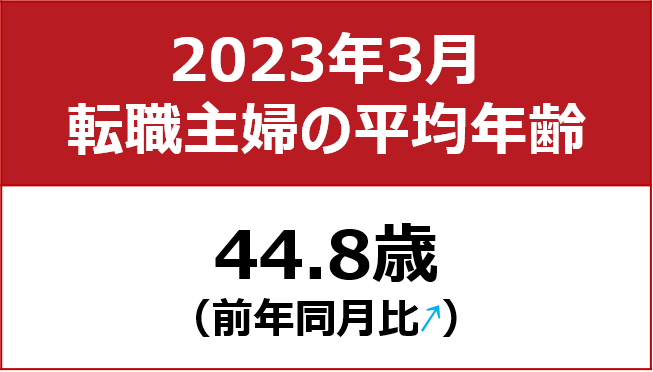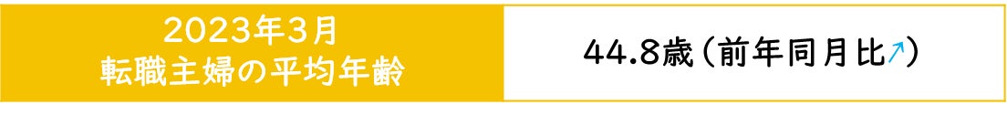 【転職主婦の平均年齢調査 2023年3月】44.8歳(前年同月比+1.5歳)