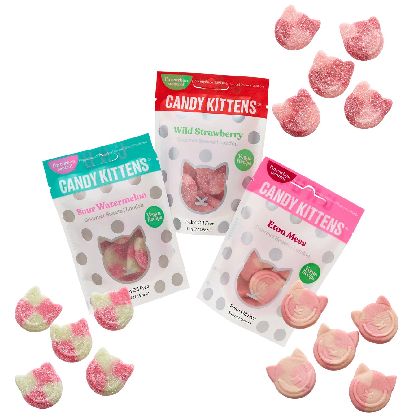 CANDY KITTENS 左から サワーウォーターメロン、ワイルドストロベリー、イートンメス 各345円