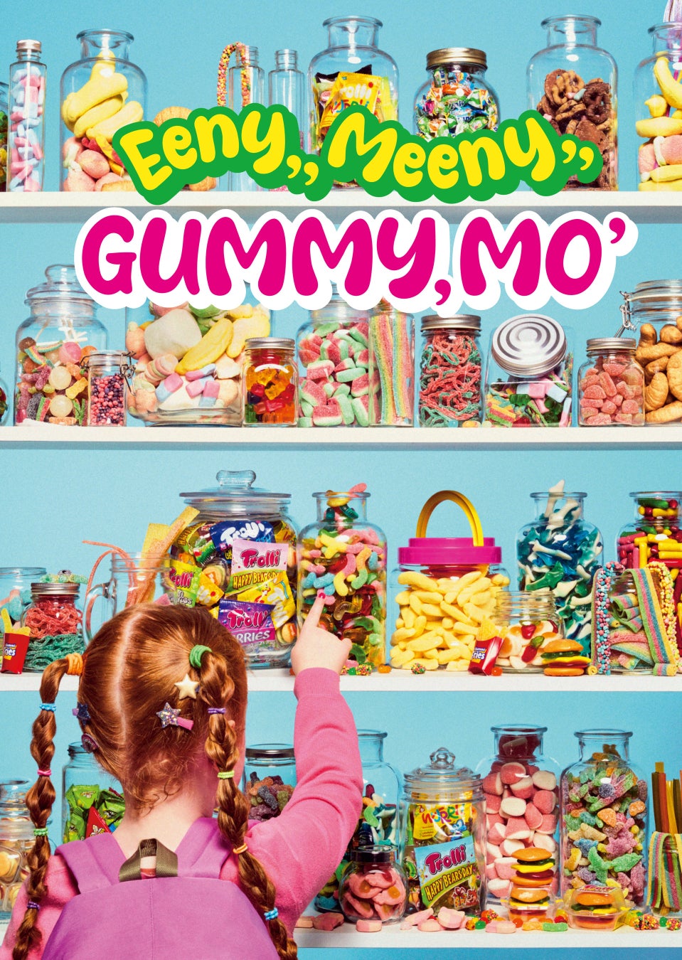 英語圏のかぞえ歌で、どれにしようか迷ったときに使われるフレーズ“Eeny, Meeny, Miny, Moe”に、みんな大好き“GUMMY”をかけ合わせた「Eeny, Meeny, GUMMY, MO’」というタイトル。タイトル通り、つい“どれにしようかな♪”と目移りしてしまうほどバリエーション豊富に、たくさんのグミをラインアップします。
