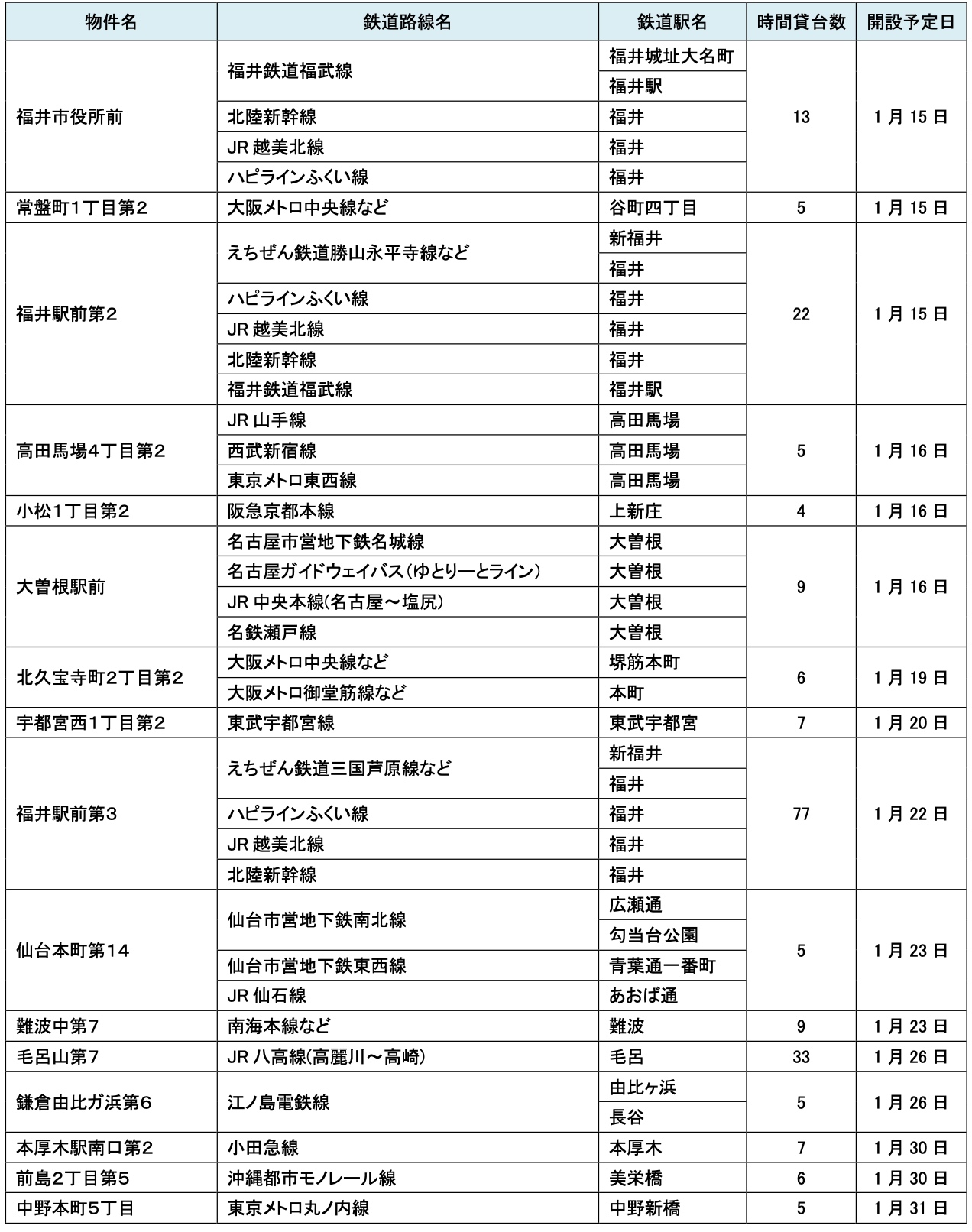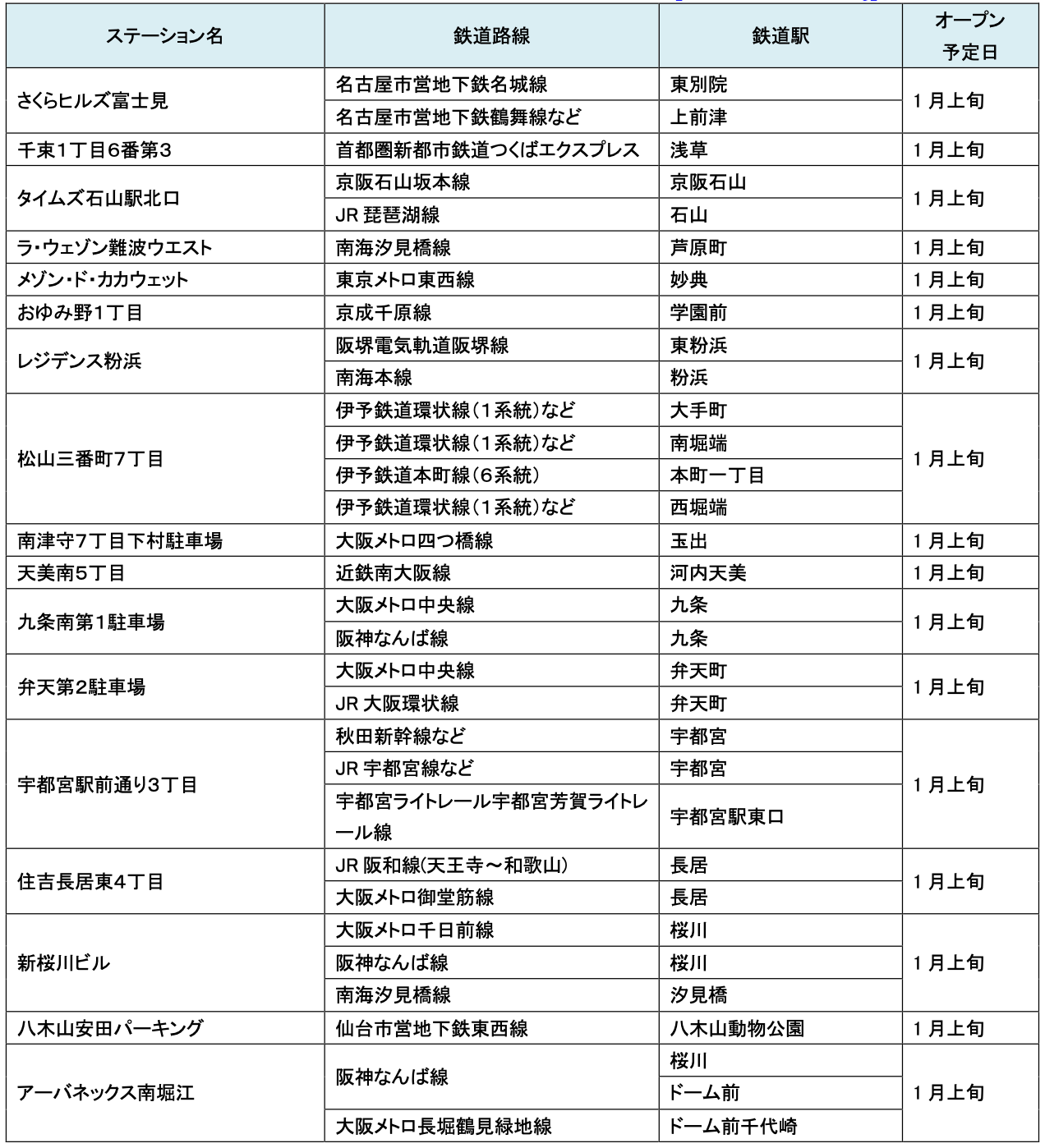 1月にオープンおよびオープン予定の「パーク&ライド」に適した駐車場は16件、「レール&カーシェア」に適したステーションは81件です。