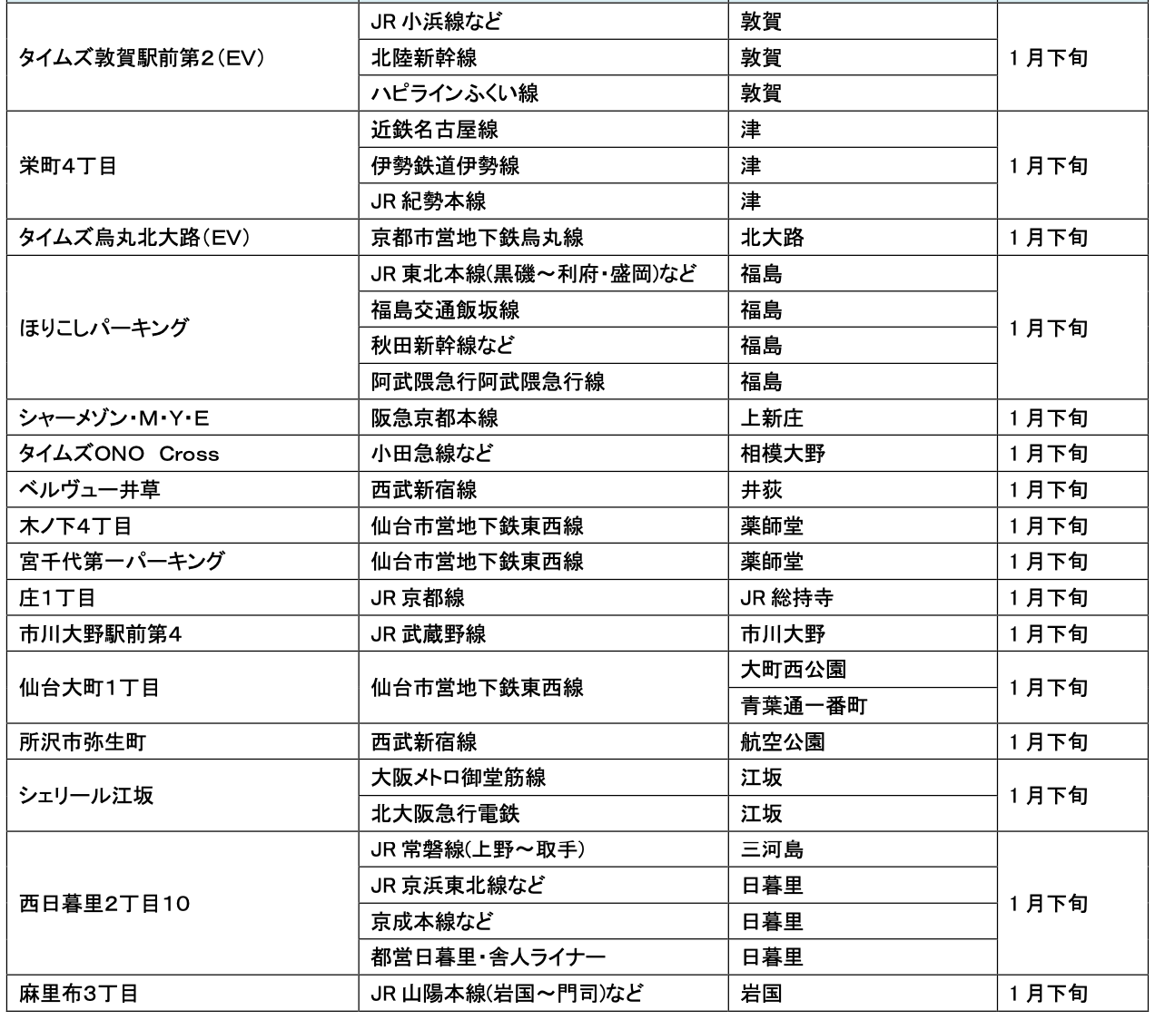 【サステナビリティアクション】パーク&ライドが可能なタイムズパーキング レール&カーシェアが可能なタイムズカーステーション 1月のオープン情報