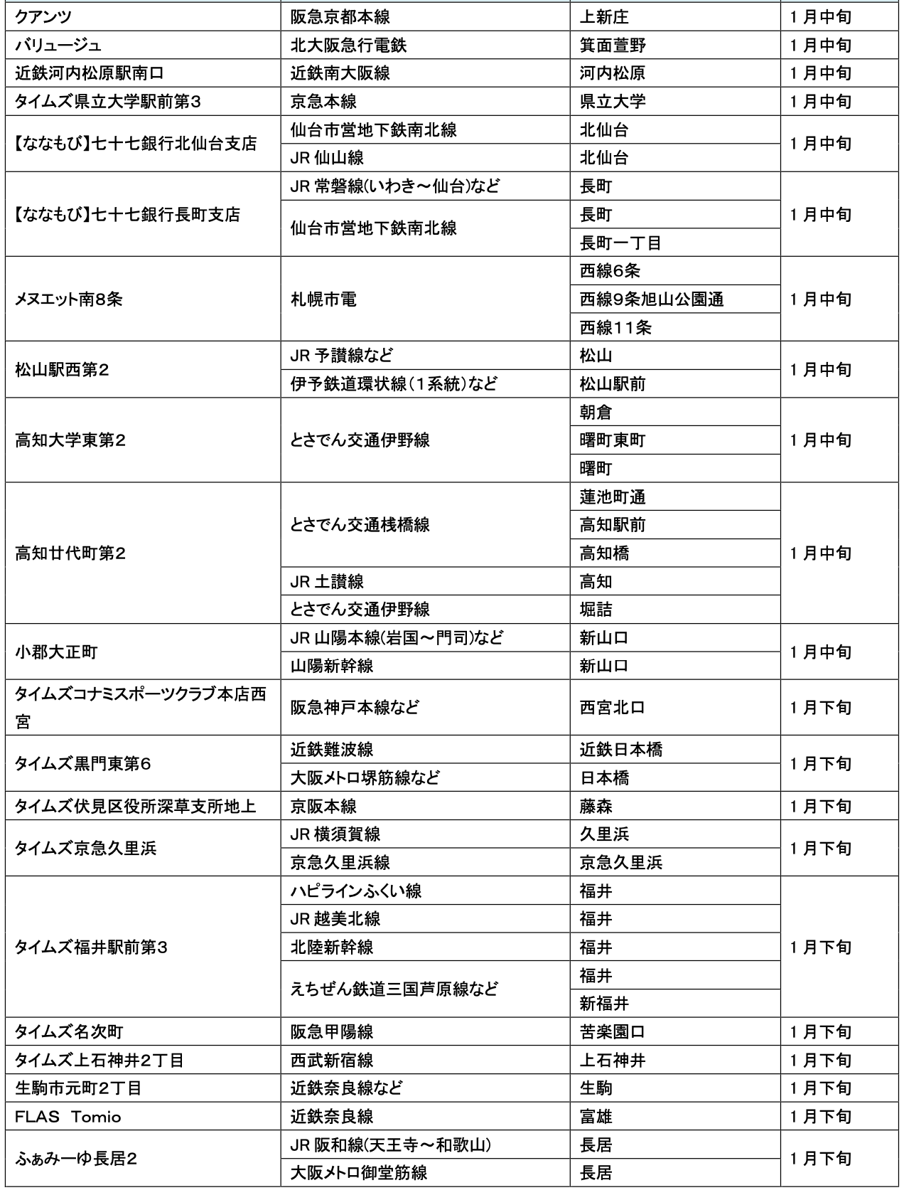 パーク24株式会社(本社:東京都品川区、社長:西川光一)は、温室効果ガスの排出量削減につながる移動法「パーク&ライド」および「レール&カーシェア」が可能なタイムズパーキングおよびタイムズカーステーションの2026年1月におけるオープン予定をお知らせいたします。