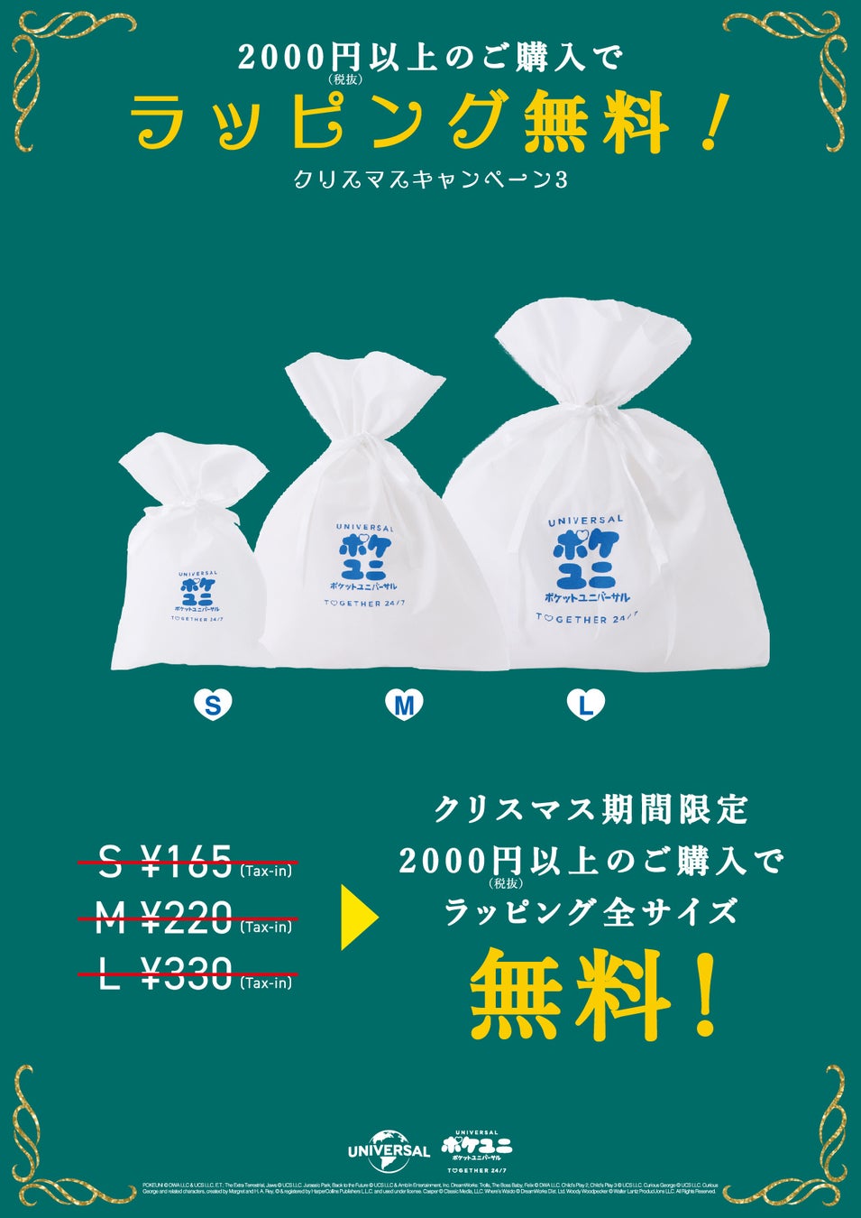 クリスマスのプレゼントはぜひポケユニで!通常有料のギフトラッピングを、期間中税抜2,000円以上買い上げの皆様に無料で行います。