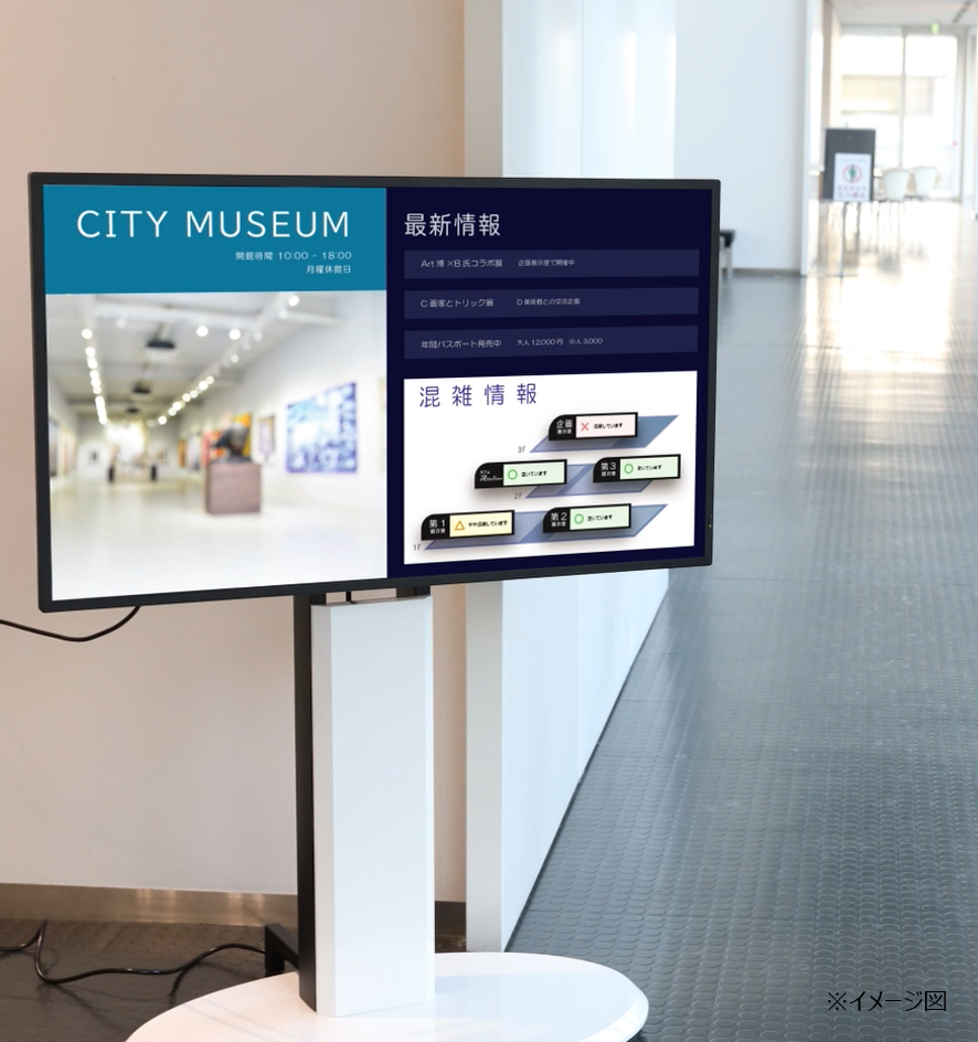 ・宿泊施設や博物館などにおいて、施設内のサイネージ端末に各エリアの混雑状況を表示することで、施設利用者は混雑を避けて安心して利用できます。