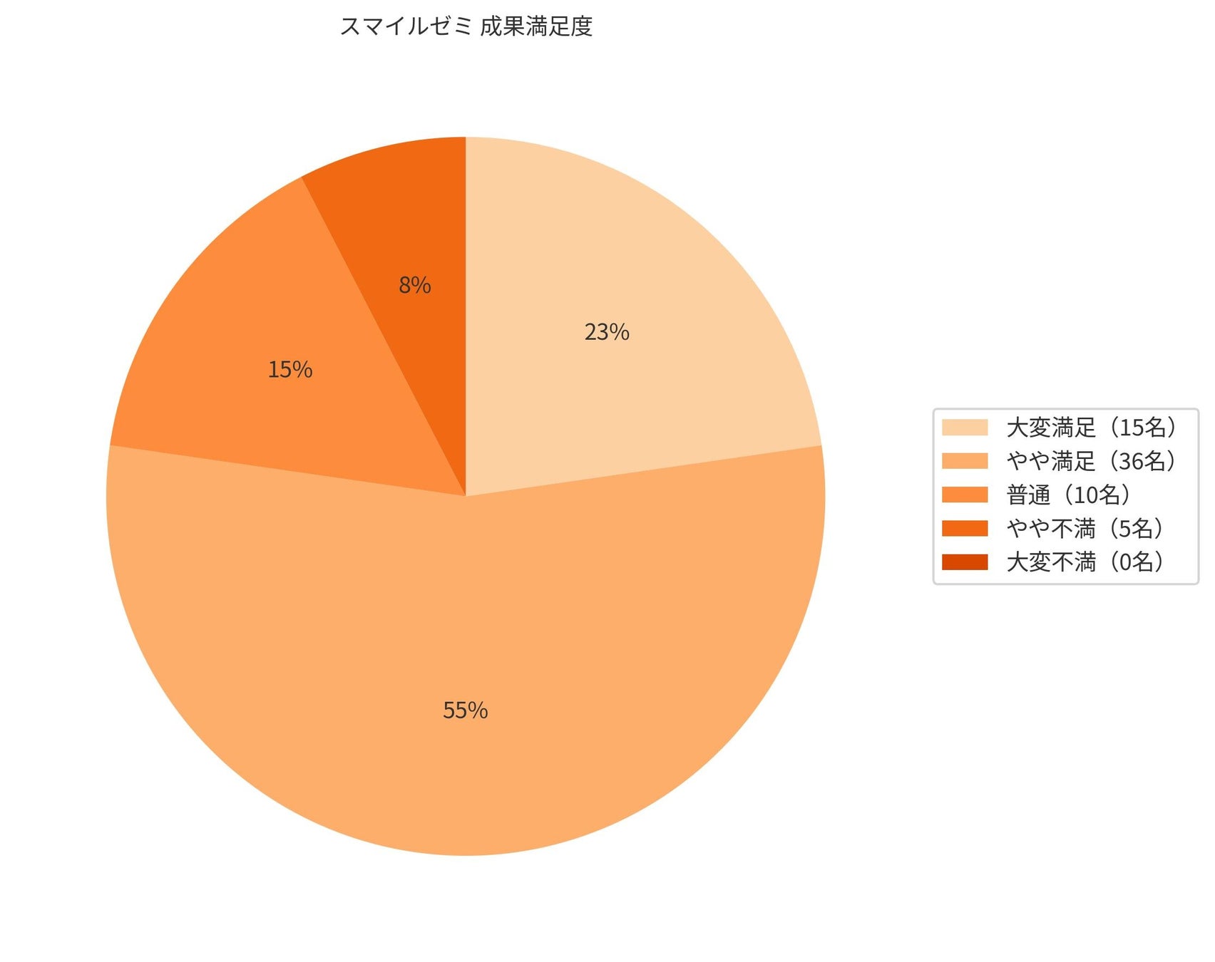 スマイルゼミのアンケート調査結果では、不満を抱えている方は8%にとどまり、75%以上の方が満足していることがわかりました。