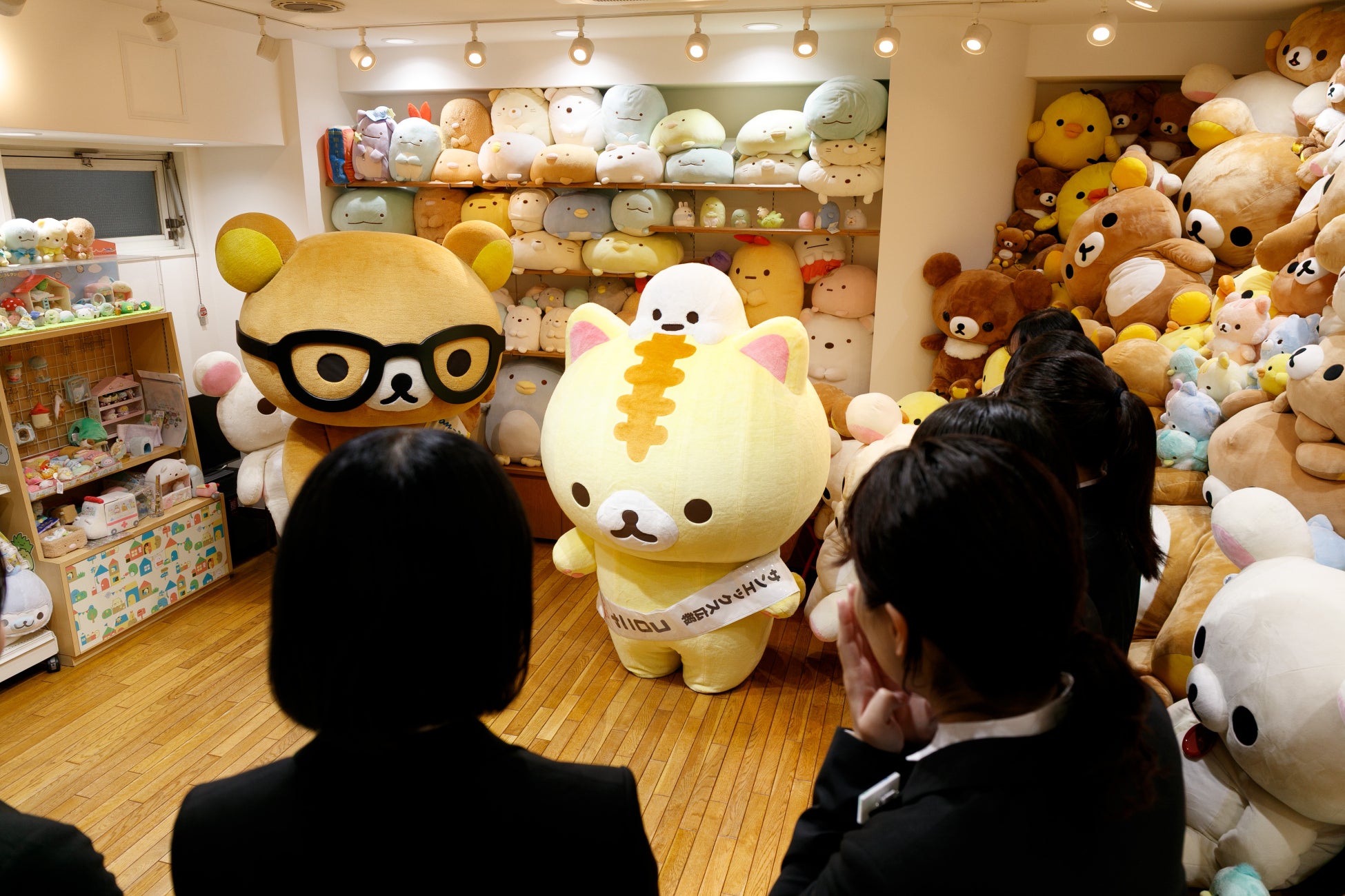 ―サンエックス2026年度入社式を実施― リラックマが“1日社長”、広報「コロニャ」が“先輩社員代表“として新入社員をお出迎えしました