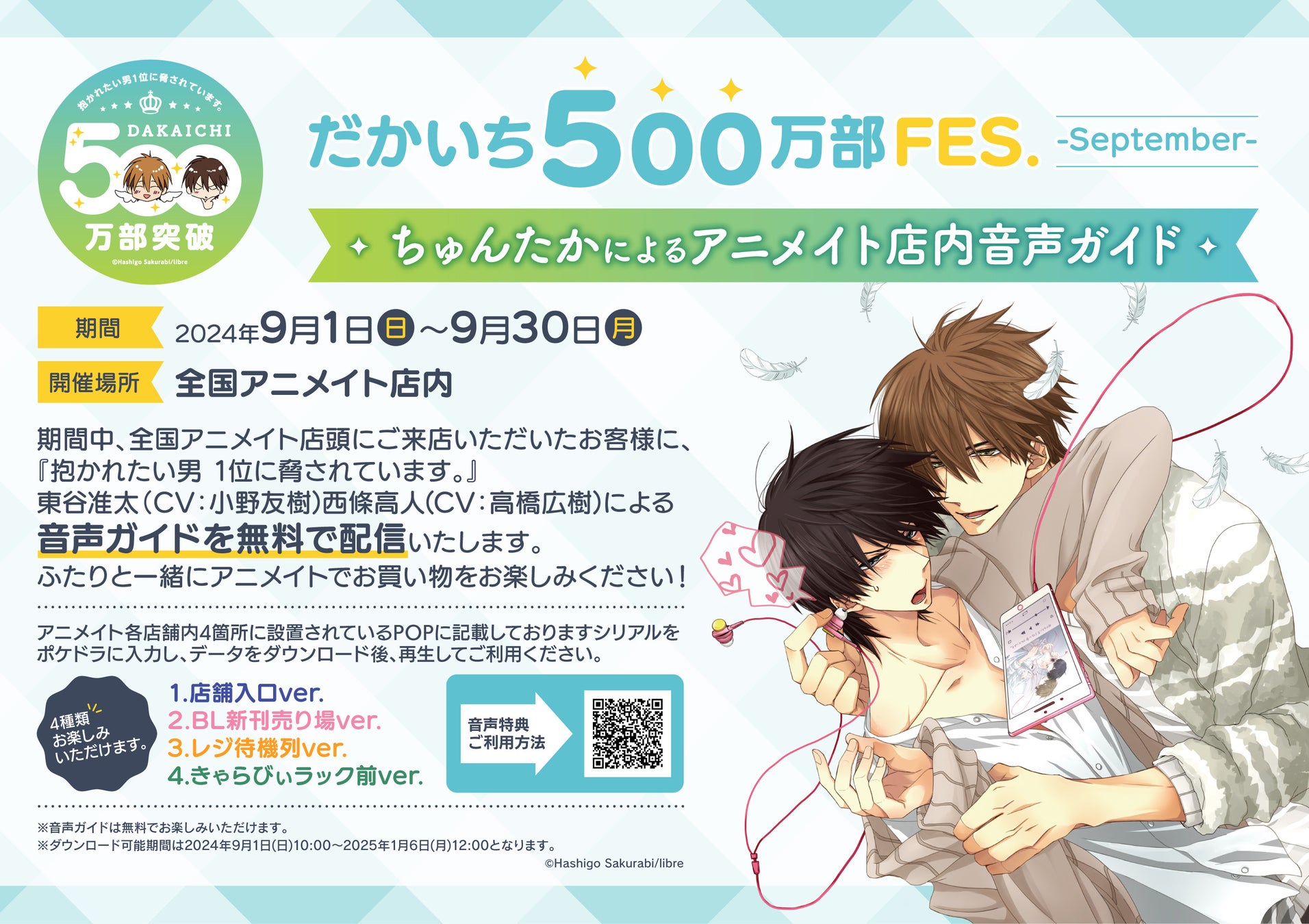 ちゅんたかによるアニメイト店内音声ガイド、本日より全国アニメイトにて配信開始!【だかいち500万部FES.】