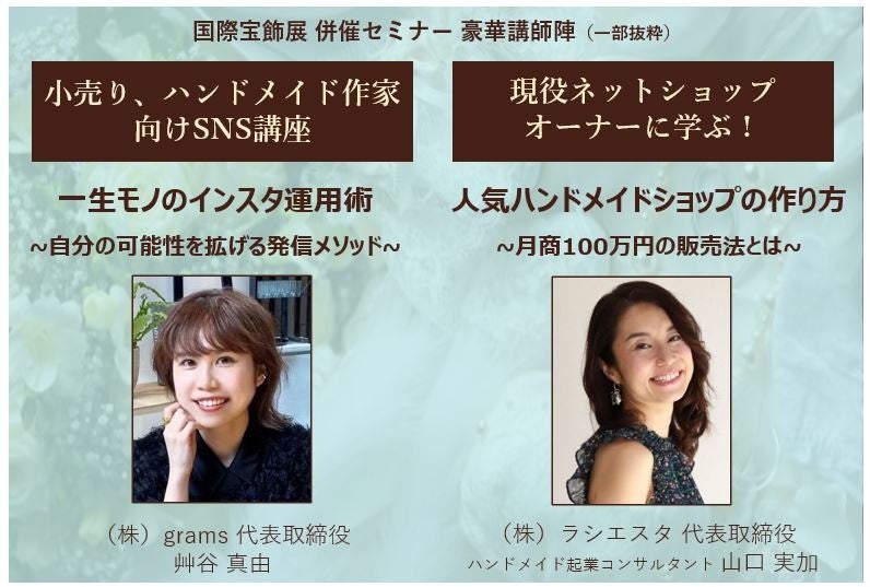 展示会併催セミナーには、ハンドメイド作家向けのSNSメソッドや、販売法を語れる一流講師が登壇!