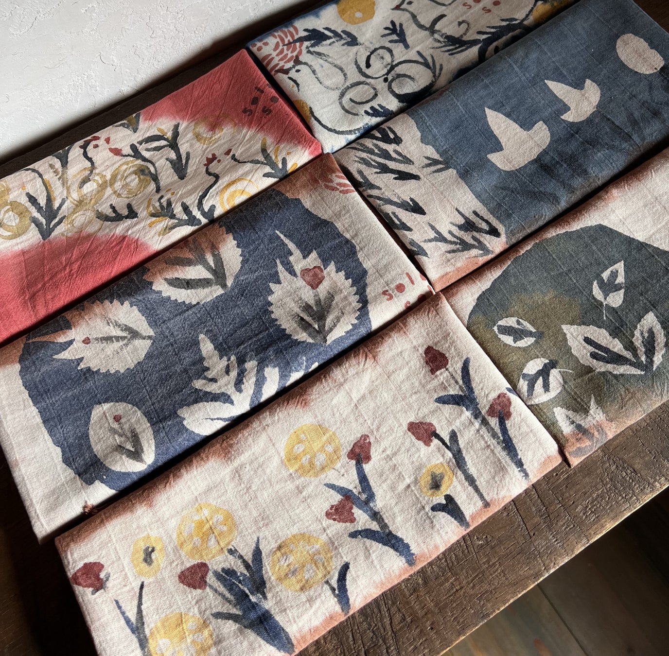 「Organic Wind」の染色を担当する長野県大町市在住の作家solosoloの作品は、鉱物からなるインクを使った染め付けも特徴です。6月14日、15日に「葉っぱと紙の版画」のワークショップを企画しました。無地のリネンハンカチもしくはトートバッグのいずれかを選び、星野エリアの葉や古紙を切り抜いた型紙にインクを付け、模様を刷ります。レイアウトやデザインは自由。当日はsolosoloの田澤康彦、苺禾夫妻が製作をサポートします。完成品は旅の思い出として持ち帰ることができます。