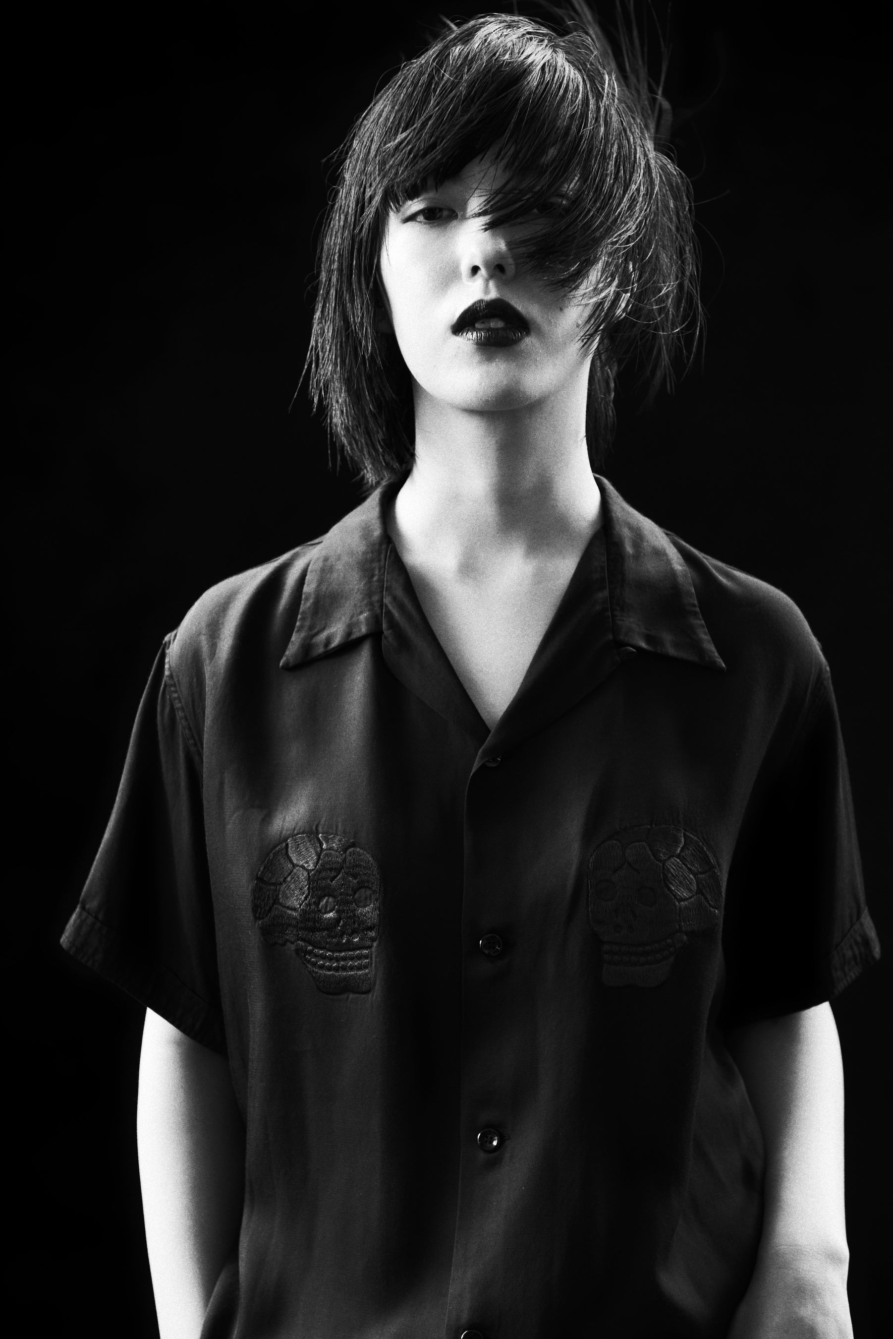 古いスカシャツに付いているような後ろ身頃のアクションプリーツなど特徴的な要素は保持され、丈を長めに、身体と服の間に空気が入るY'sらしい型に調整されたシェイプに、テーラー東洋が所蔵するヴィンテージの中からY'sが選んだドクロと蛇の迫力ある図案が黒一色で表現される。