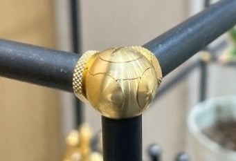金属加工工場の職人が細部に至るまで意匠にこだわって作った球体型のジョイントと、パーツを組み合わせるフレーム収納家具。