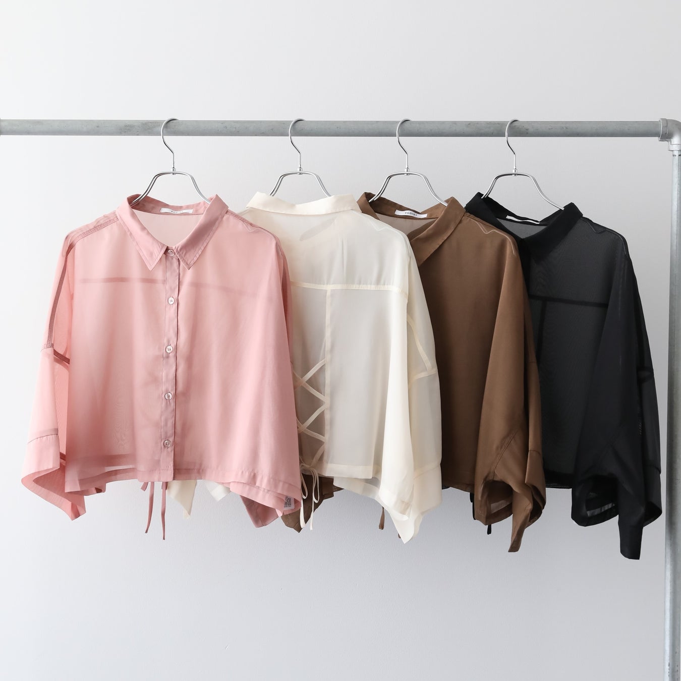 EGOIST 5分袖短丈シアーシャツ