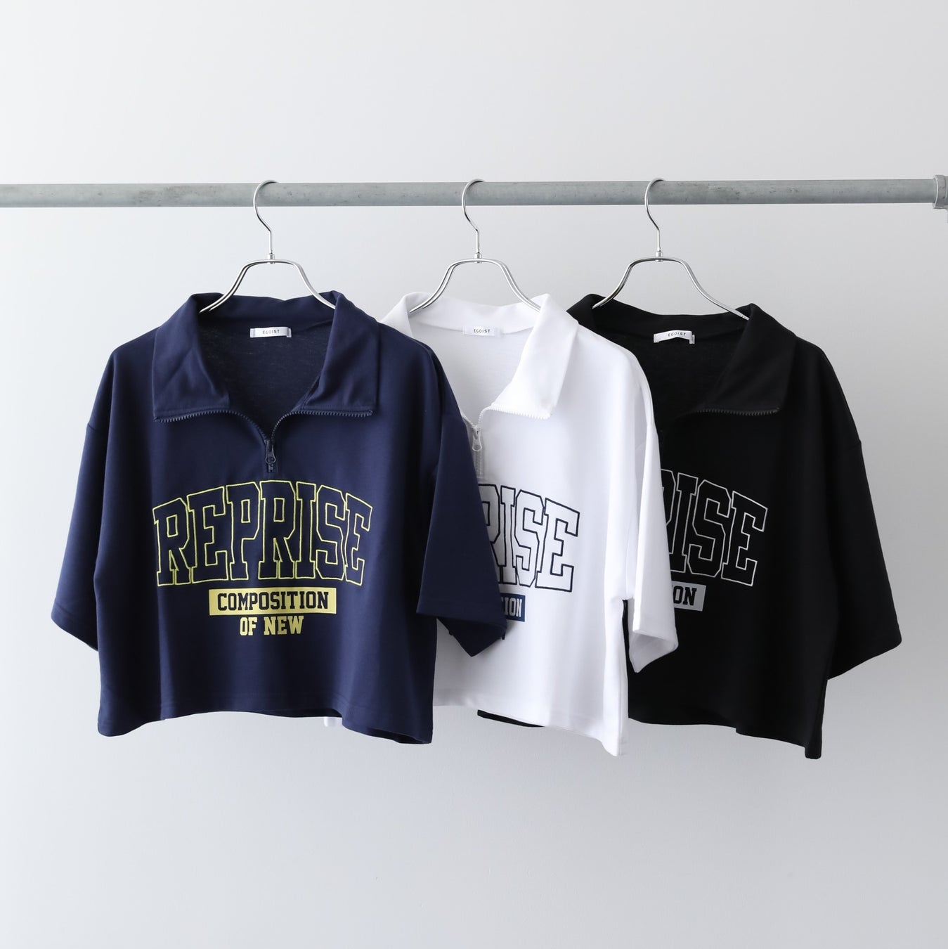 EGOIST ハーフZipロゴ5分袖プルオーバー