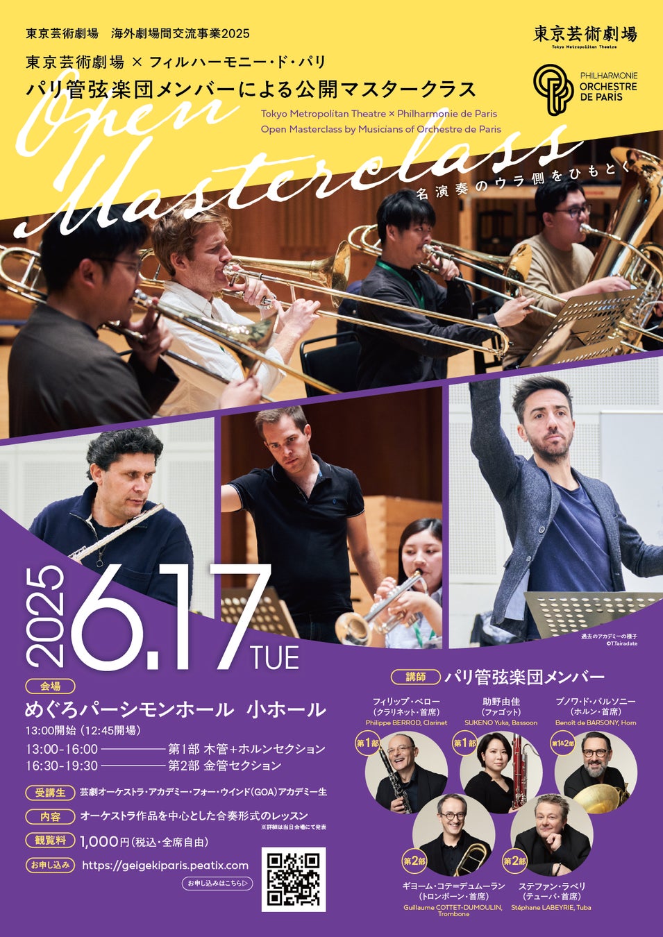 「パリ管弦楽団メンバーによる公開マスタークラス」開催!