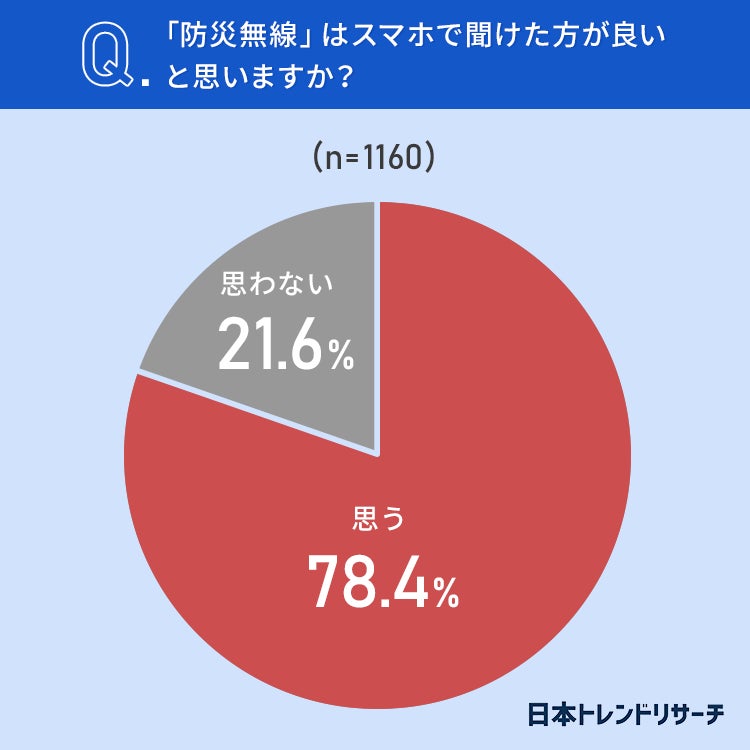 78.4%の方が、防災無線はスマホで聞けた方が「良い」と回答しました。