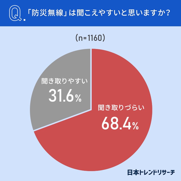 68.4%の方が、防災無線が「聞き取りづらい」と回答しています。
