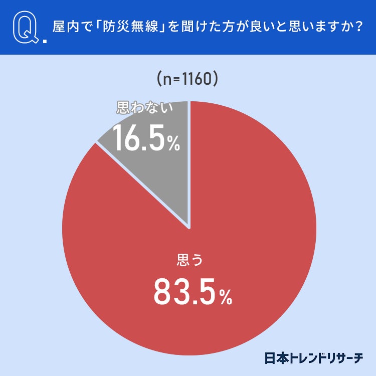 83.5%の方が、屋内で防災無線を聞けた方が良いと「思う」と回答しました。