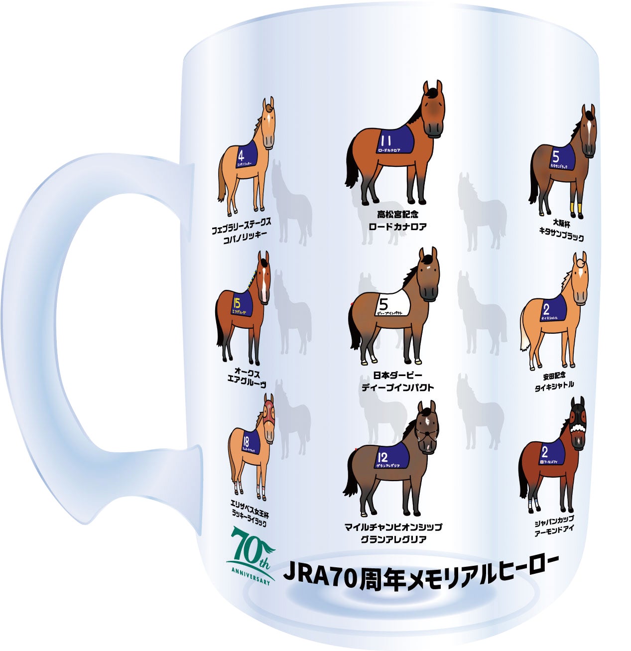 ほのぼのとした馬のイラストで多くの競馬ファンを魅了する、おがわじゅりさんが描く、JRA70周年メモリアルヒーローのイラストを使った数量限定オリジナルグッズなどを販売します。