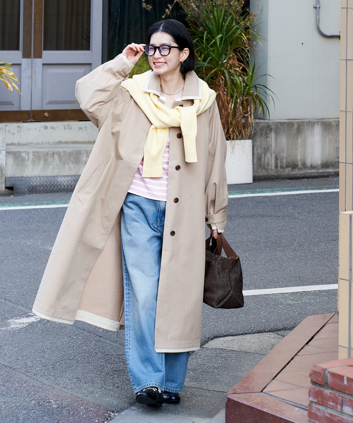 【ITEM01】 配色ステンカラーコート ¥18,546(tax in)