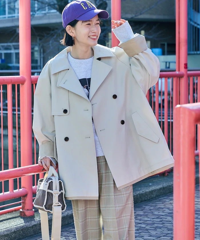 【ITEM07】 配色 ショートトレンチコート ¥16,995(tax in)