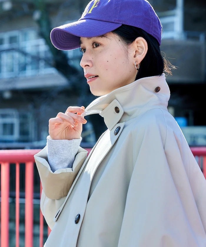 配色デザインがアクセントになり、さりげなくトレンド感を演出するミドル丈コート。Aラインシルエットがフェミニンな印象で、カジュアルだけでなく女性らしいスタイリングにもマッチ。首元はチンストラップ付なので、留めればクールな雰囲気に。