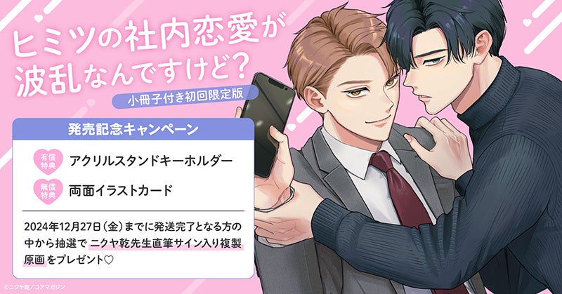 直筆サイン入り複製原画が当たる!ニクヤ乾先生『ヒミツの社内恋愛が波乱なんですけど? 小冊子付き初回限定版』発売記念キャンペーン開催!【ホーリンラブブックス】