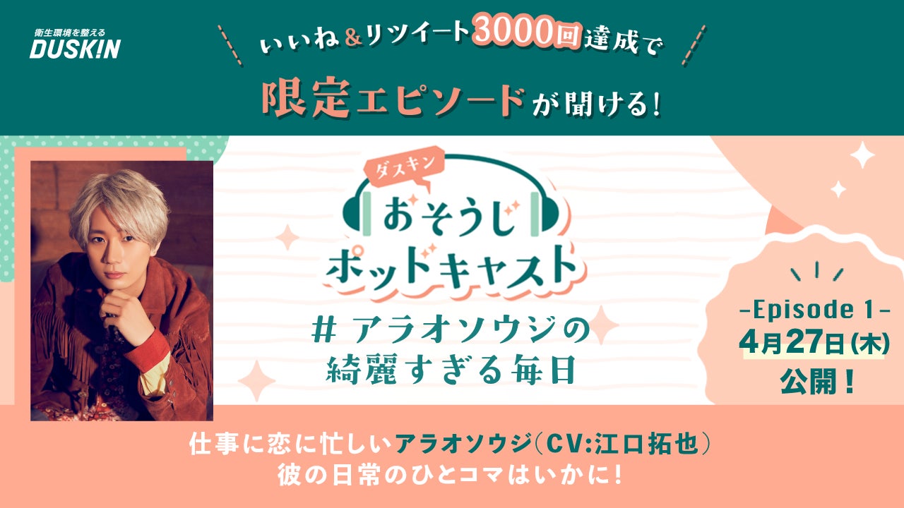 ダスキンおそうじポッドキャスト「#アラオソウジの綺麗すぎる毎日(全3話)」エピソード1を4月27日(木)AM10:00より配信開始