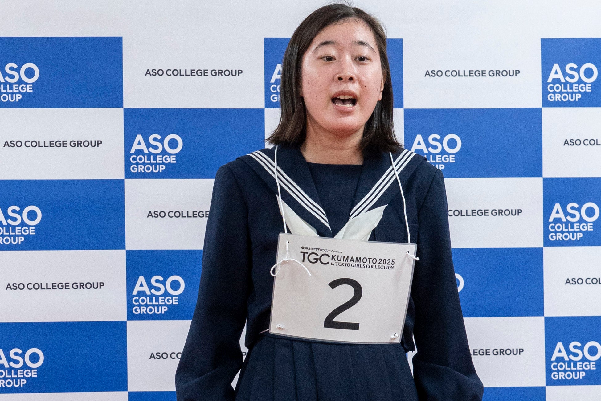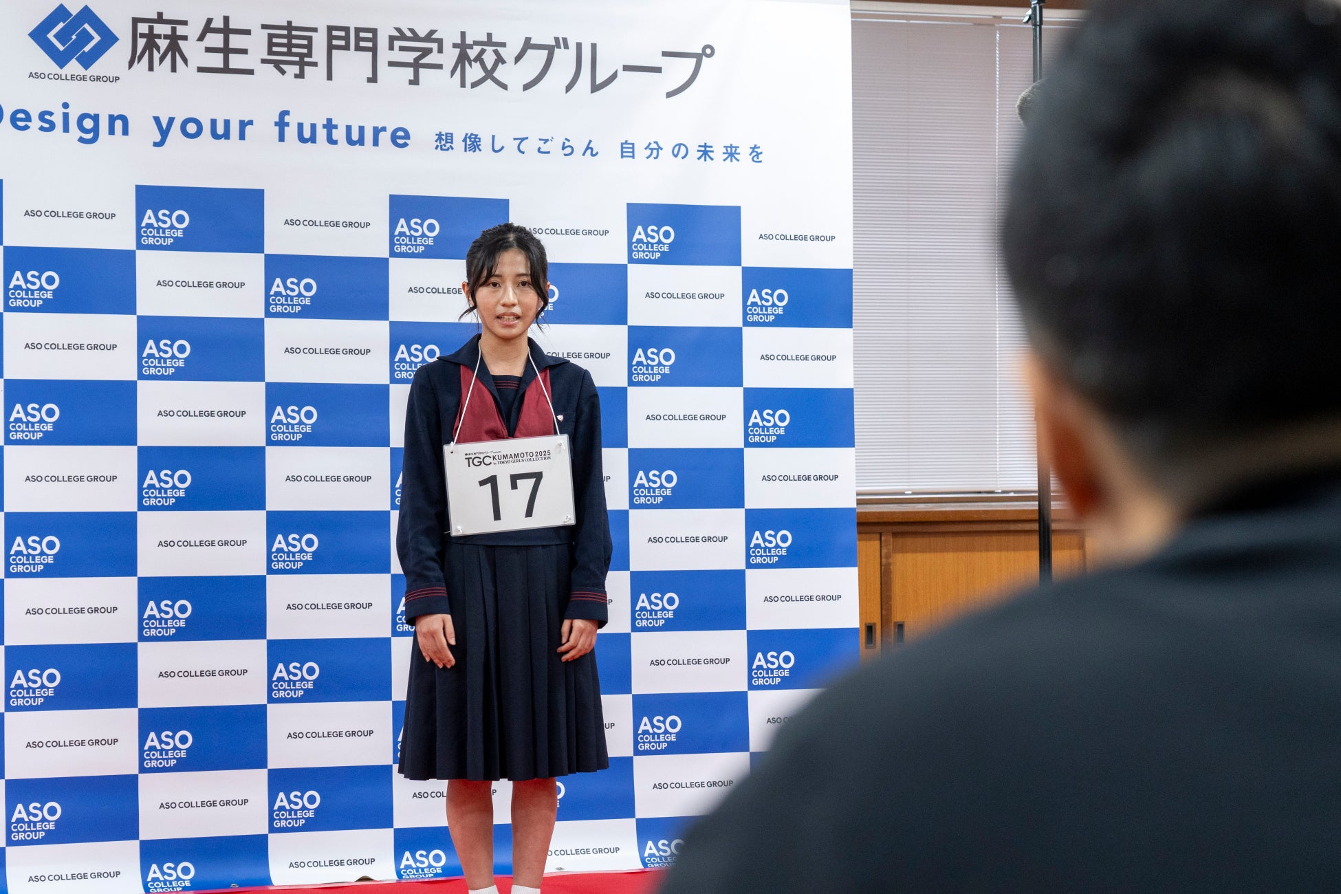 私は中学生の時に人間関係に悩んでいて、そんな時に音楽を聴いて、歌っている方の感情が乗った声や歌詞が心に響いて、音楽にすごく救われました。それから、私も誰かに音楽を届けたい、たくさんの人を音楽で笑顔にしたい、音楽に恩返しをしたいと思うようになりました。中学2年生からはボイストレーニングにも通っています。私は将来アーティストになるために頑張っているのですが、TGC熊本では、1人でも多くの方々に笑顔と元気を届けられるように頑張りたいと思っています。