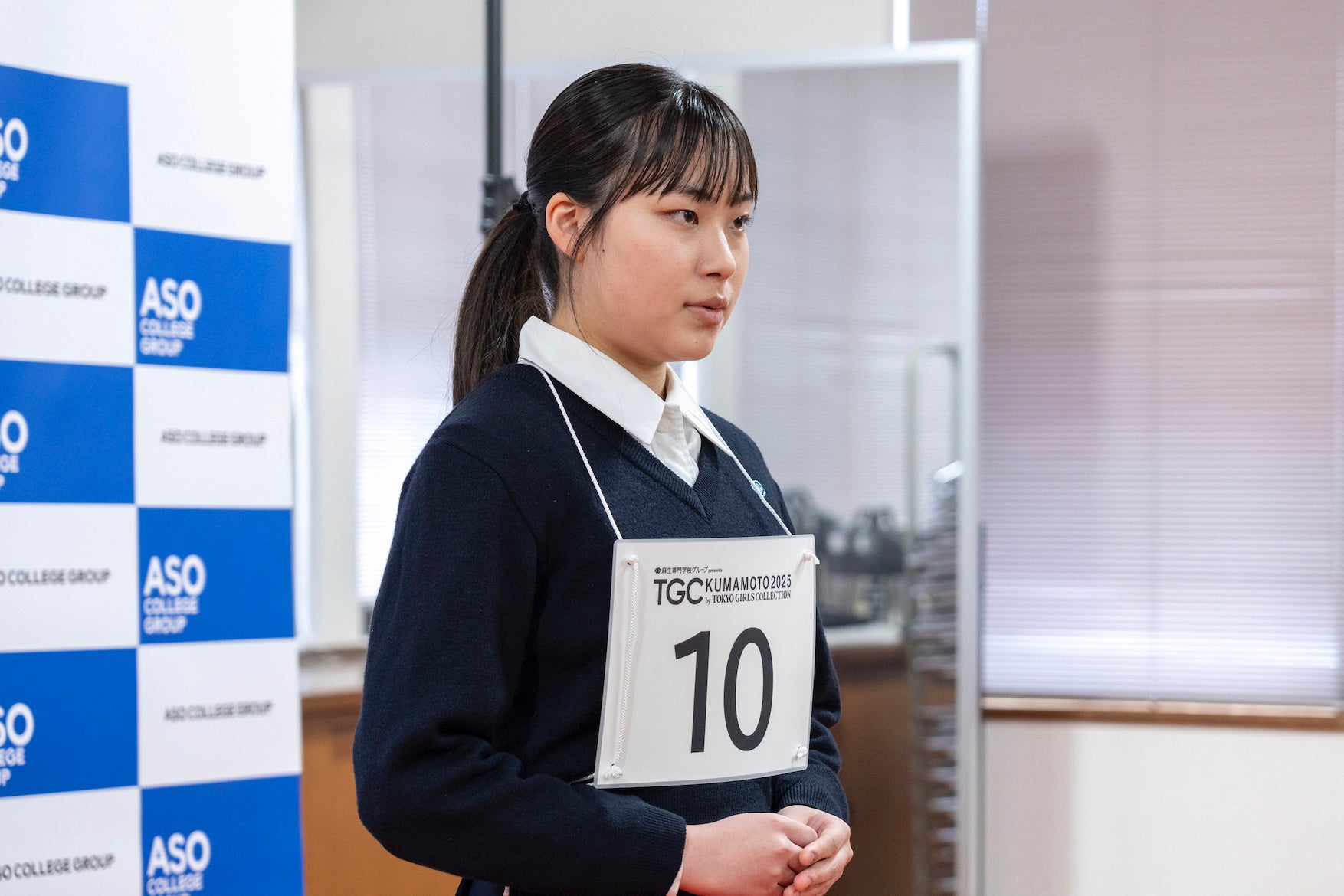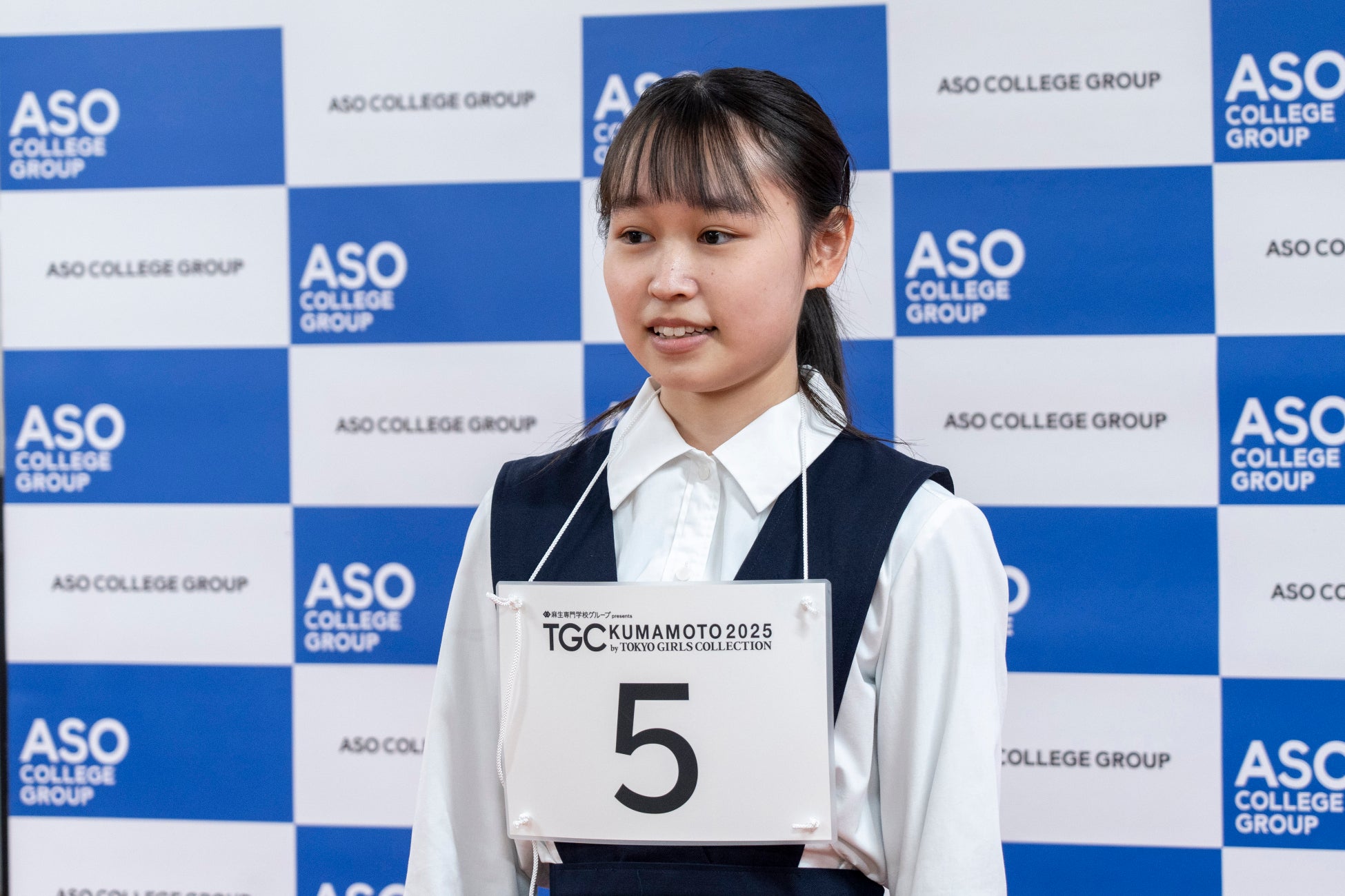 小さい頃からピアノを習っていて、音楽と触れ合う機会が多く、高校で合唱部に入り、改めて音楽の楽しさを実感しました。私の友人がランウェイ(昨年2024年の「麻生専門学校グループ SPECIAL STAGE」)に参加していて、興味があって。今回は私も参加して、高校生らしい華やかで貴重な経験をしたいと思って応募しました。