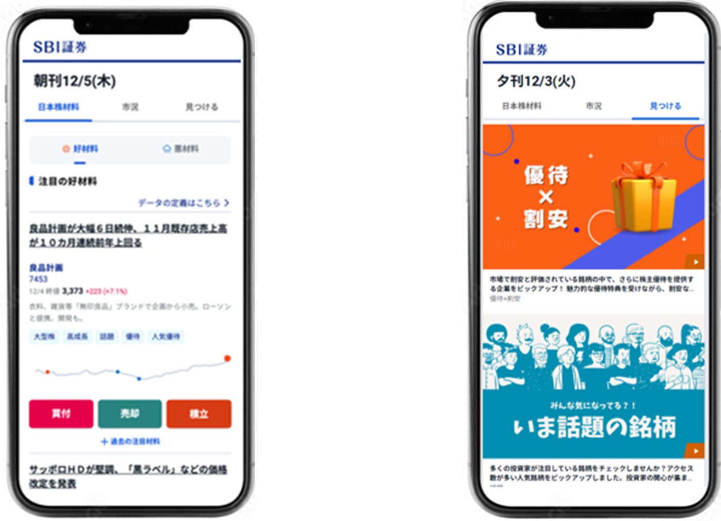 本投資情報サービスは、当社の口座有無にかかわらず無料でどなたでも、当社WEBサイト「国内株式」ページ内「国内株式サービス ツール・サービス」タブの「おすすめ記事」>「朝刊・夕刊」からご覧いただけます。https://sbi.alpaca-tech.ai/(本サービスページに遷移します)