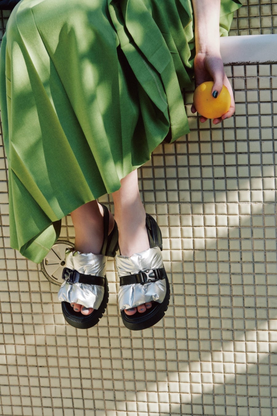 足当たり優しいパファーデザインで、包み込むようなリラックス感ある快適な履き心地に。