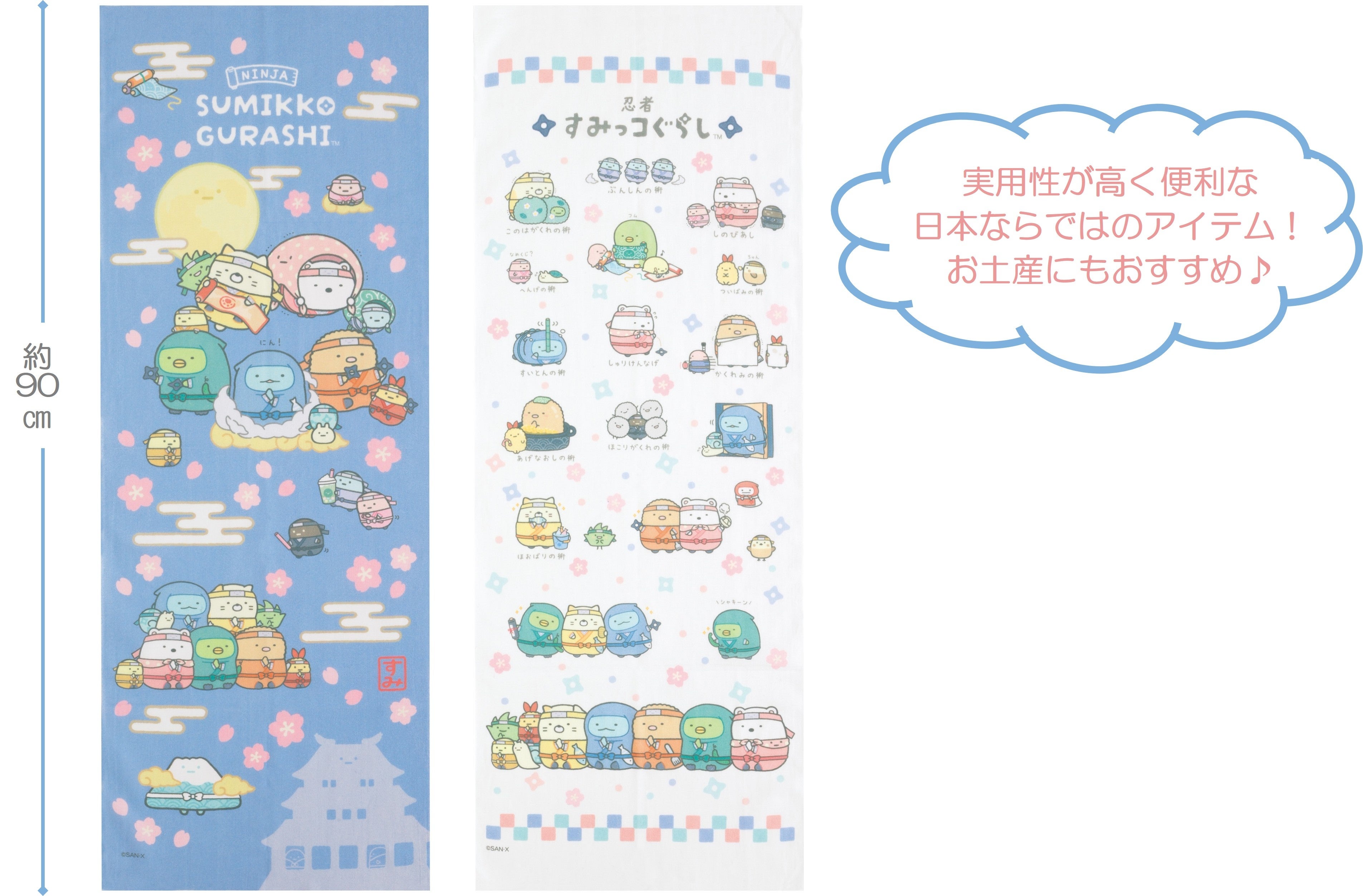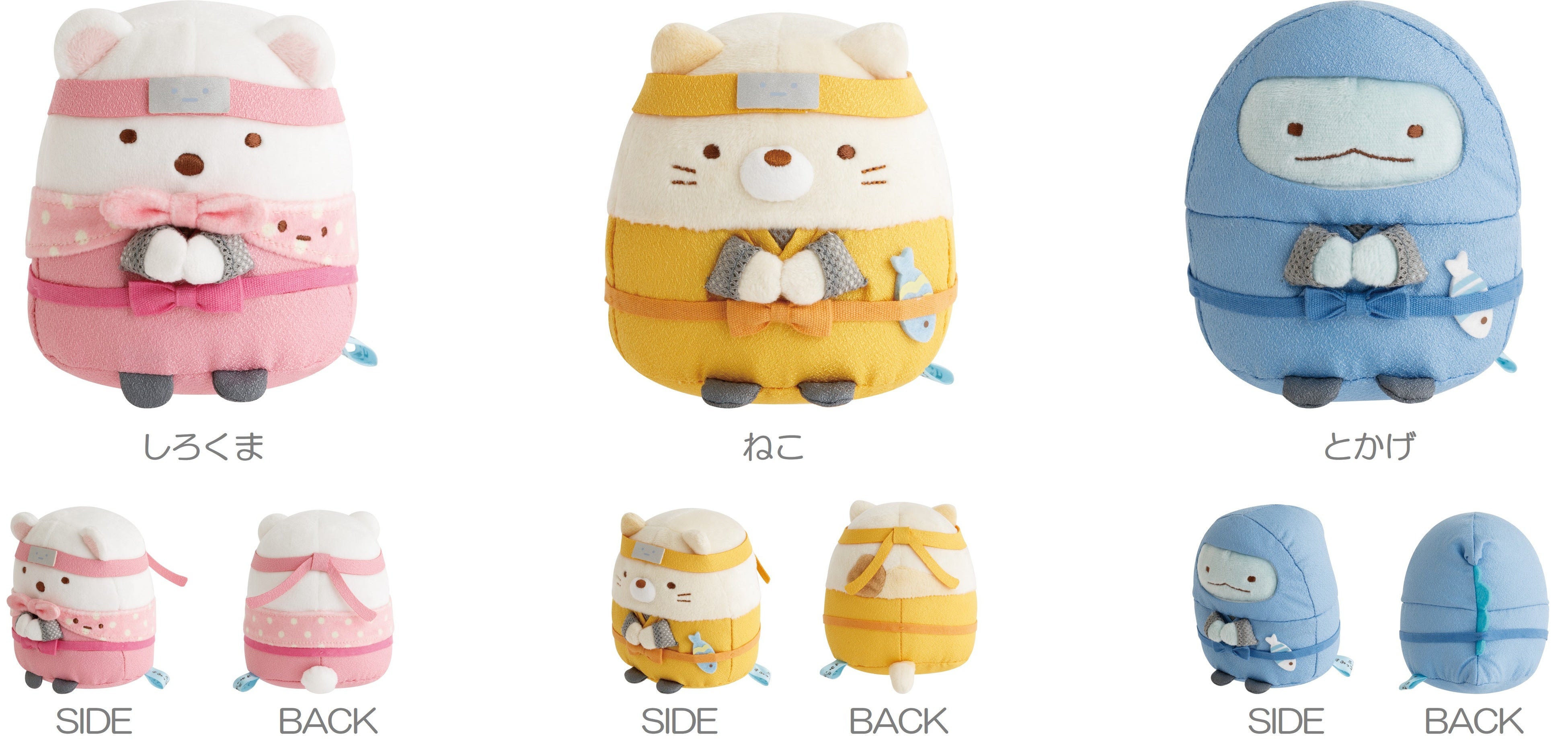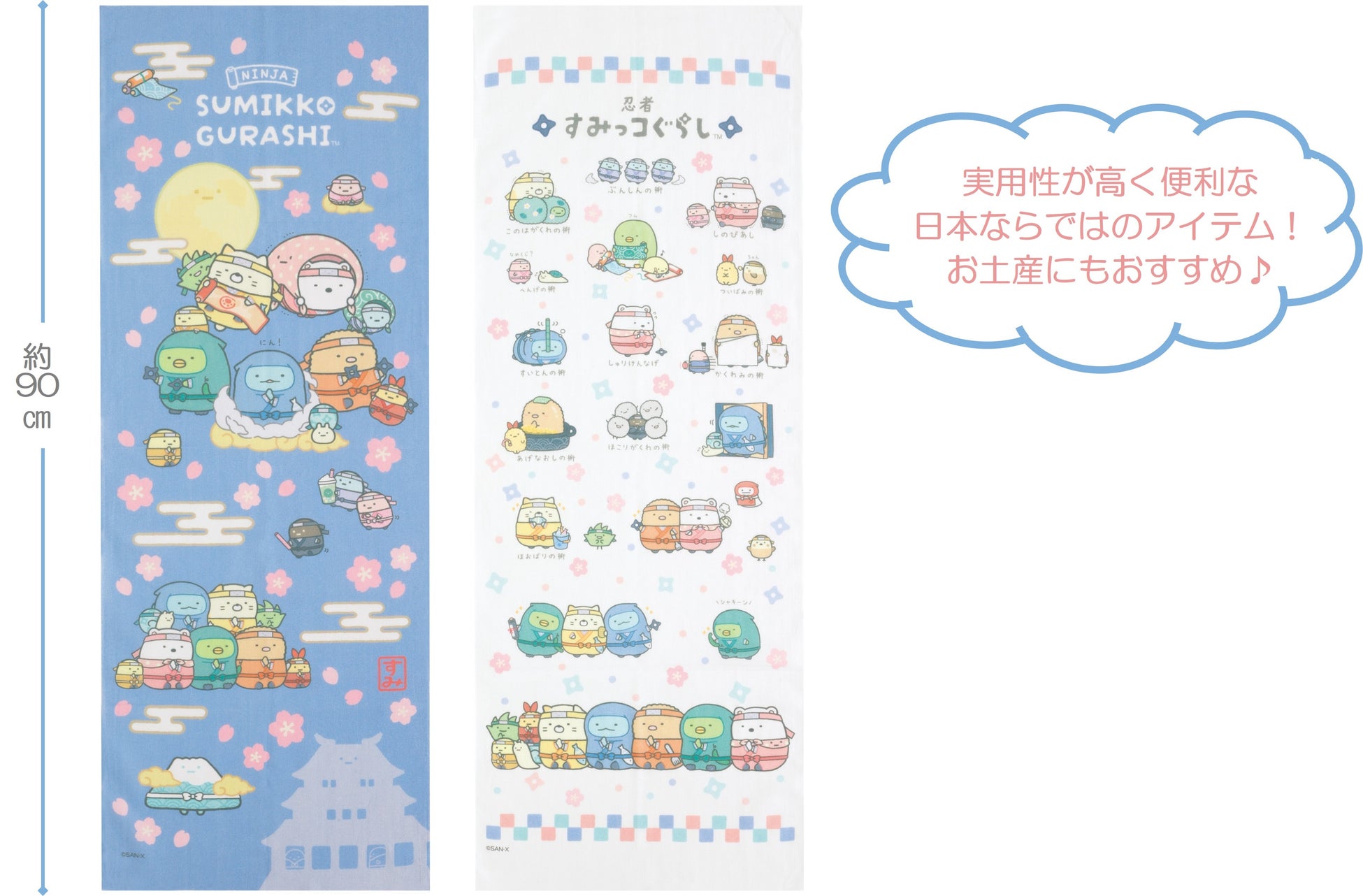 『忍者』に扮したすみっコたちのかわいいぬいぐるみをはじめ、遊び心満載な手裏剣モチーフの文房具や、和柄模様の縫製品、日用雑貨が多数登場。ユニークで楽しい新シリーズは、海外への日本土産やプレゼントにも喜ばれる商品です。