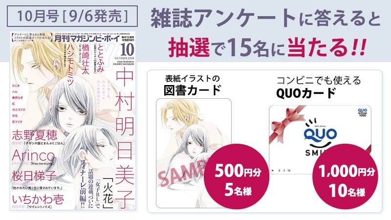 中村明日美子先生の表紙イラスト図書カードが当たる愛読者プレゼント