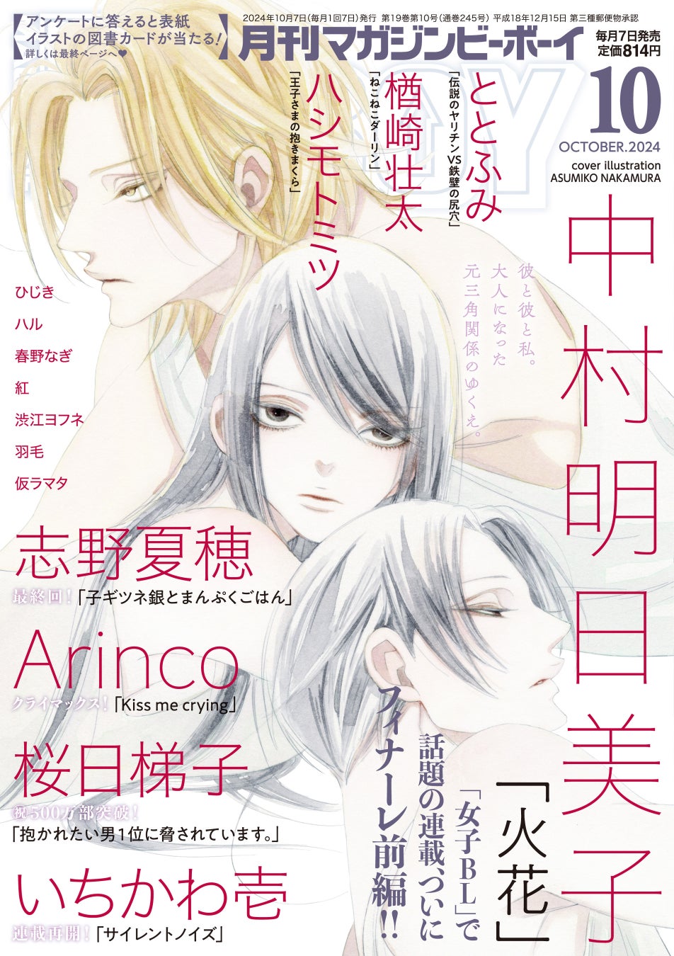【明日発売】「マガジンビーボーイ2024年10月号」(著:中村明日美子)表紙で待望の続編連載! マガジンビーボーイ10月号は、9月6日発売