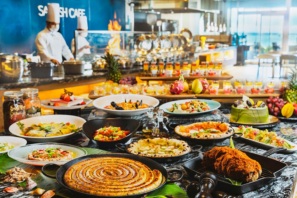 レストラン「マカンマカン」では、美と健康をテーマに身体にやさしい沖縄食材を使ったヘルシー朝食をご用意。オーダーを受けて蒸すアツアツ点心、麻婆豆腐や酢豚、マンゴプリンほかスイーツを心ゆくまで味わえる、飲茶三昧ランチとディナーが人気です。