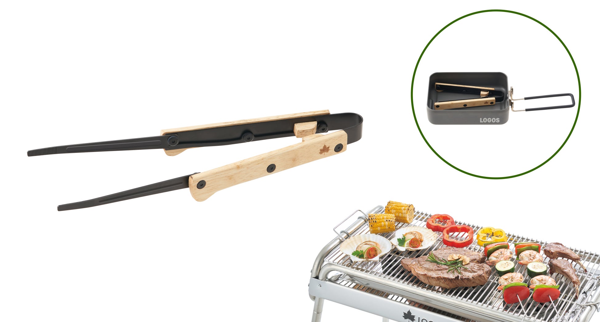食材が掴みやすく、盛り付けや取り分けにぴったりな「LOGOS 折りたたみトング」を、BBQなどのアウトドアシーンやご家庭でぜひともご活用ください。