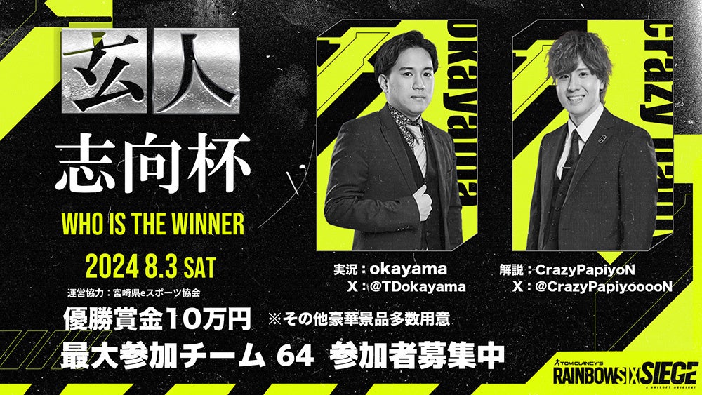 PCパーツブランド「玄人志向」は、5vs5のFPSゲーム「レインボーシックス シージ」のオンライン対戦イベント「レインボーシックス シージ 玄人志向杯」を2024年8月3日(土)に開催いたします。
