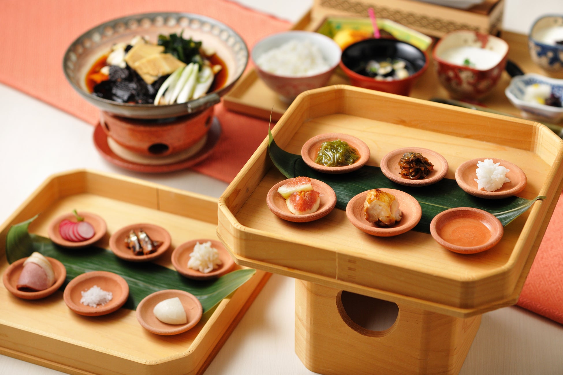 朝食には、出雲国風土記を参考に、神様に献上する食事を模した「神饌朝食」を用意します。出雲大社へ出発する前に神様とのより強いご縁を祈願します。