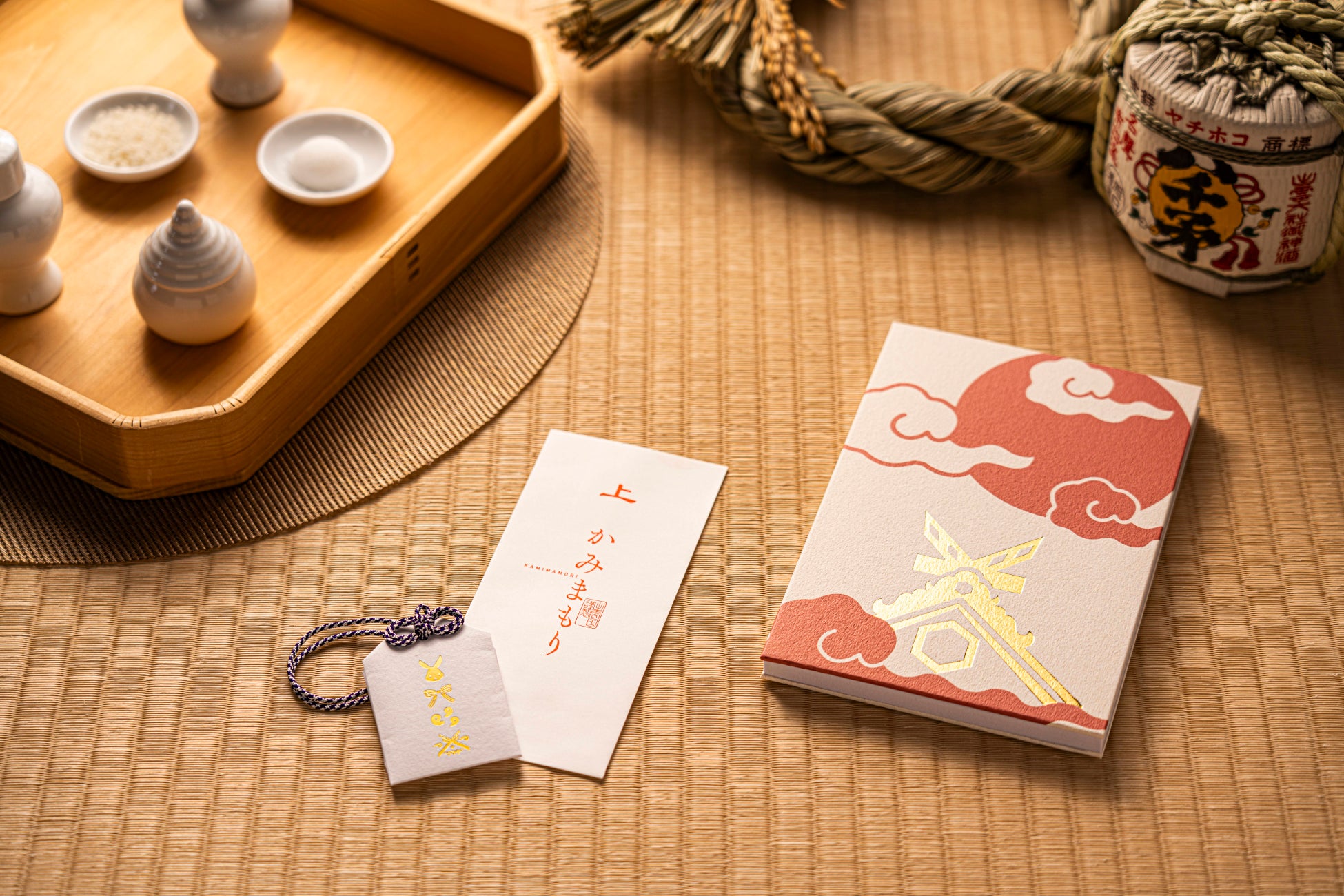 「出雲大社御神酒 八千矛(やちほこ)」、出雲大社ご本殿がデザインされた「オリジナル御朱印帳」、出雲大社素鵞の社で交換したお清めの砂を入れられる「かみまもり」の3点を用意します。到着後、御神酒で身体を清めた後は、翌日の出雲大社へのお詣りに向けて心身を整えます。