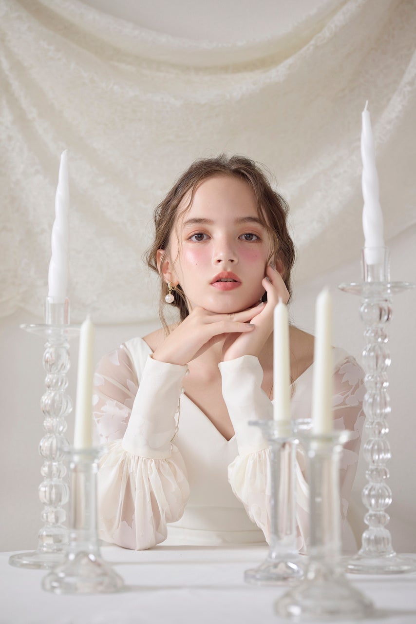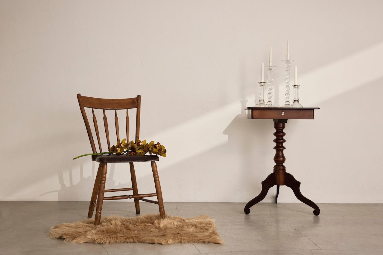 アンティークテーブルとキャンドルが生み出す、重厚感のある上品な空間。ブラウンベースのカラーが、洗練された上品さを演出します。ヨーロッパのプリンセスのような、エレガントな雰囲気に。