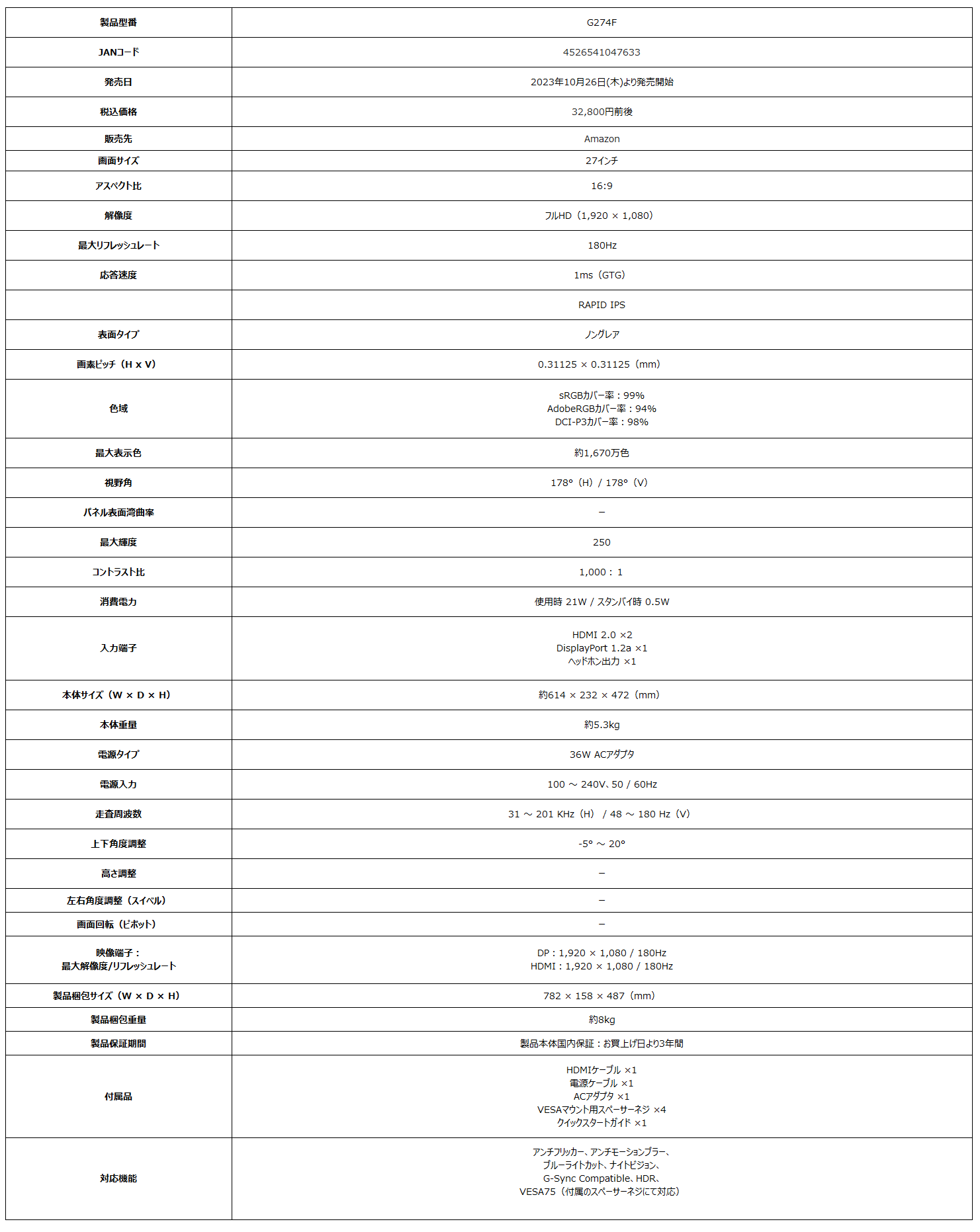 ■ G274F製品ページ: https://jp.msi.com/Monitor/G274F