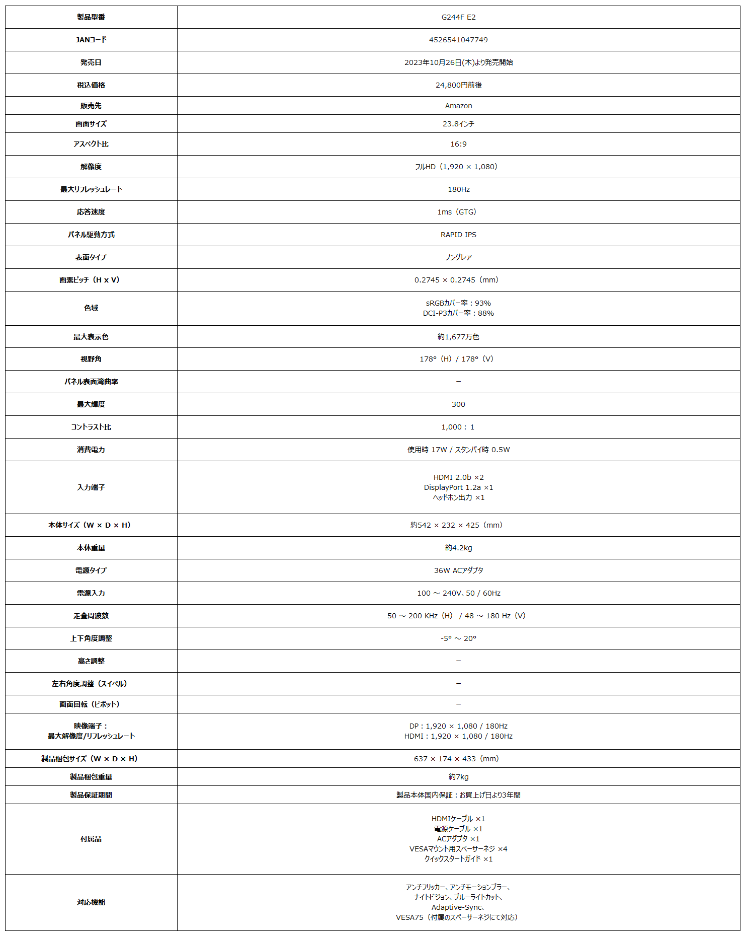 ■ G244F E2製品ページ: https://jp.msi.com/Monitor/G244F-E2