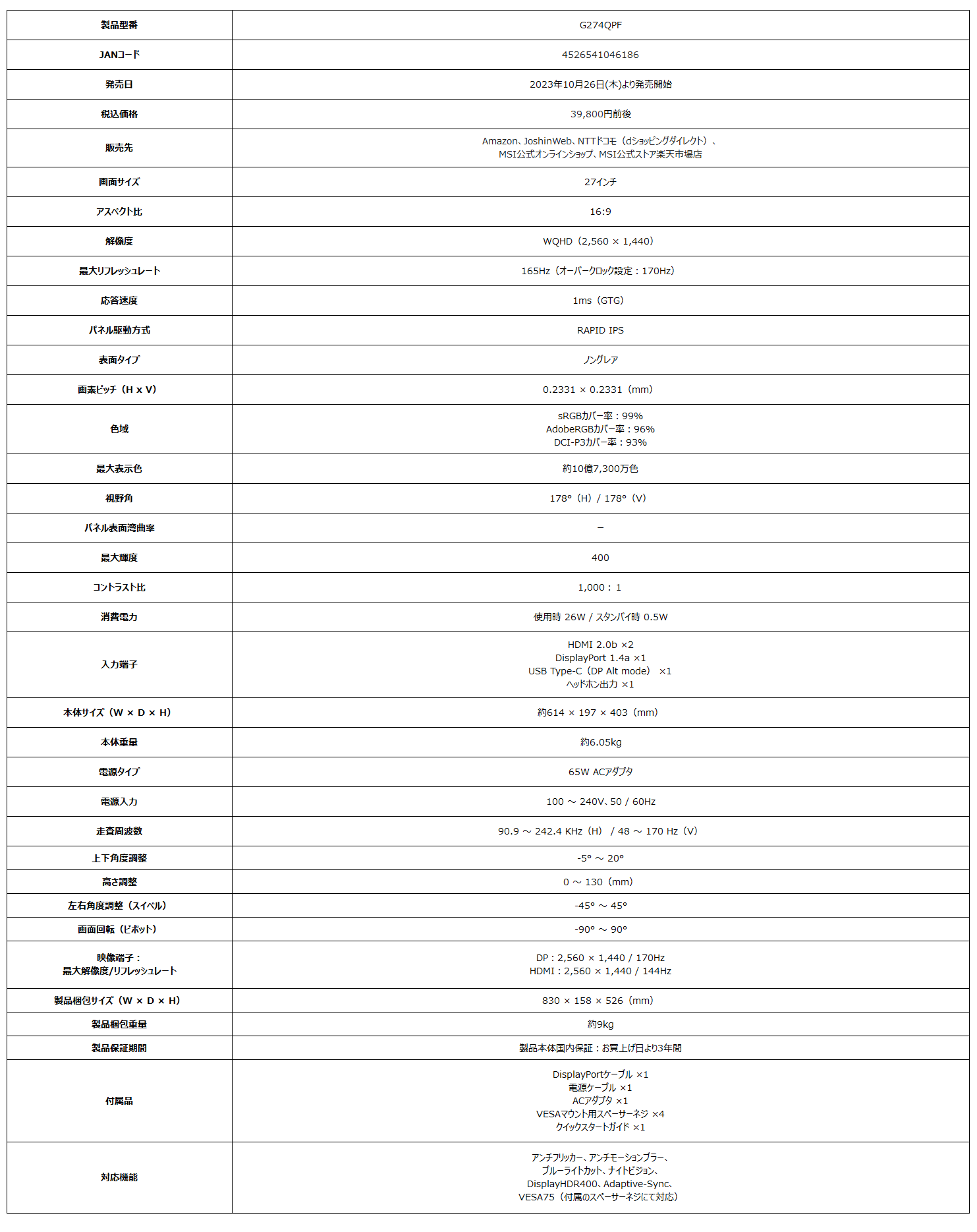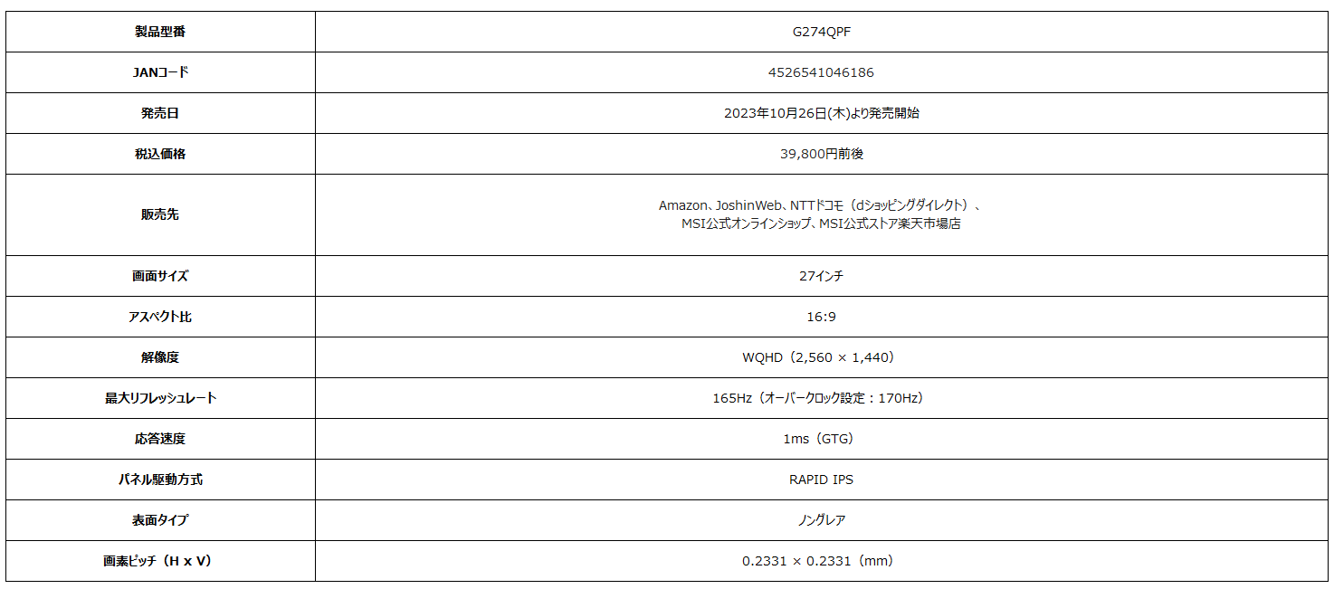 ■ G274QPF製品ページ: https://jp.msi.com/Monitor/G274QPF